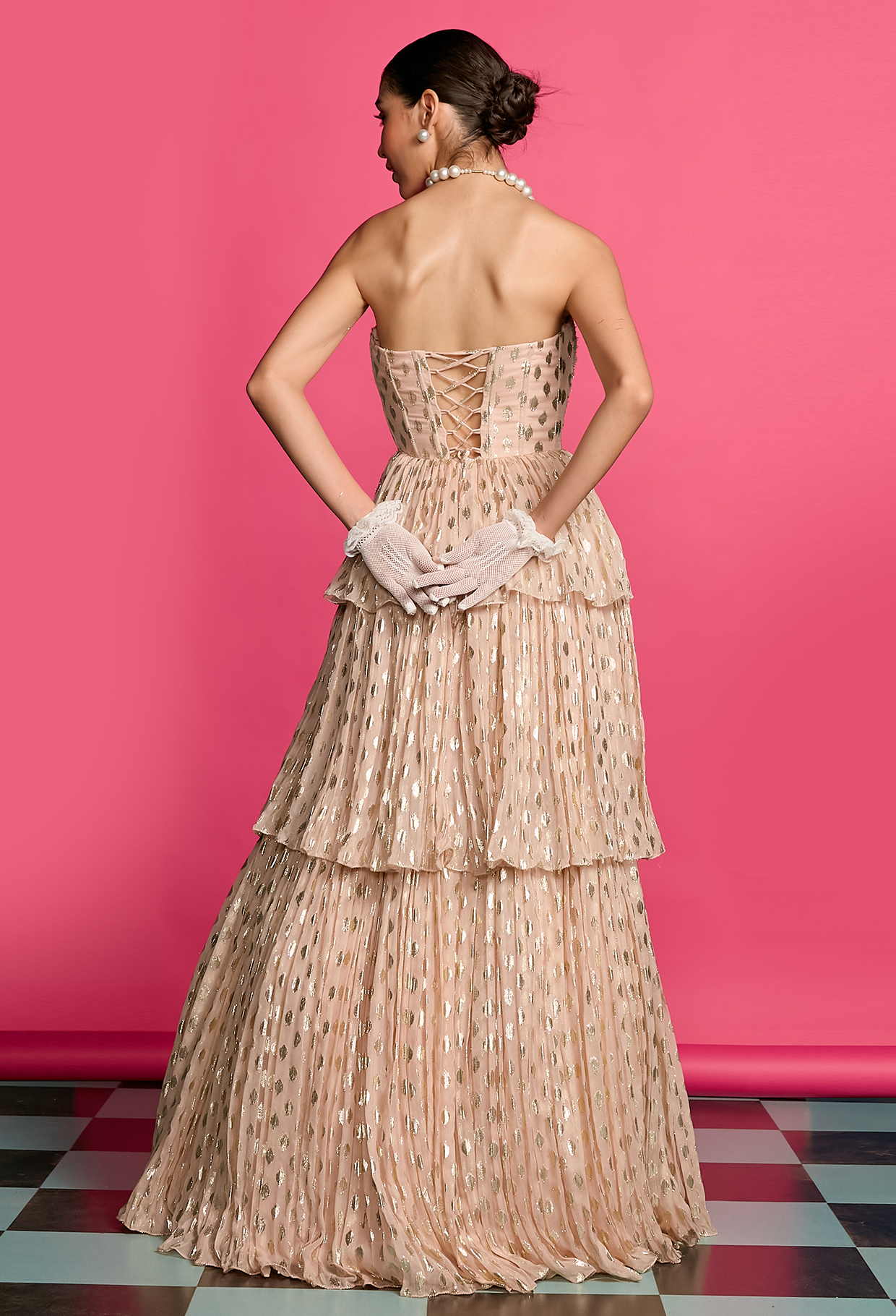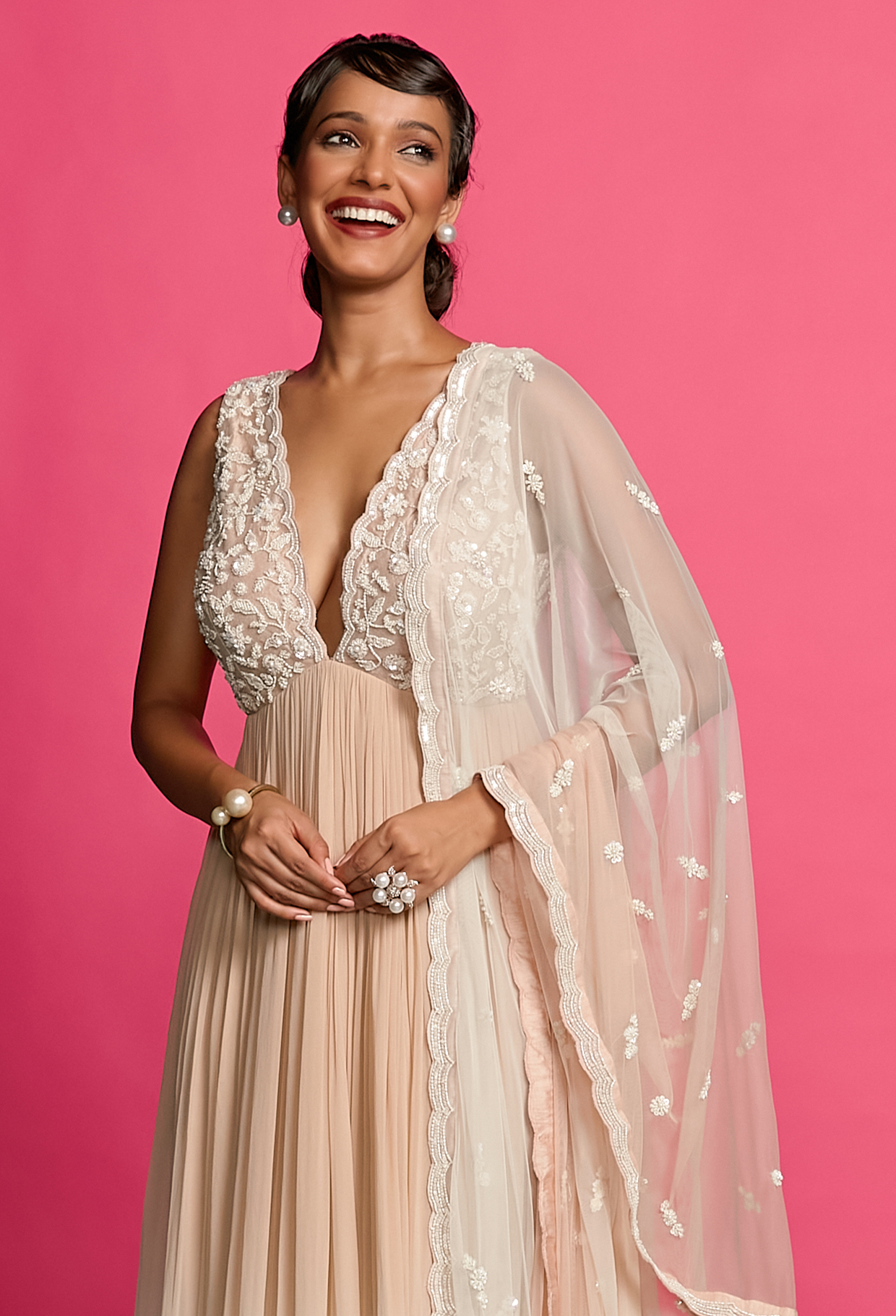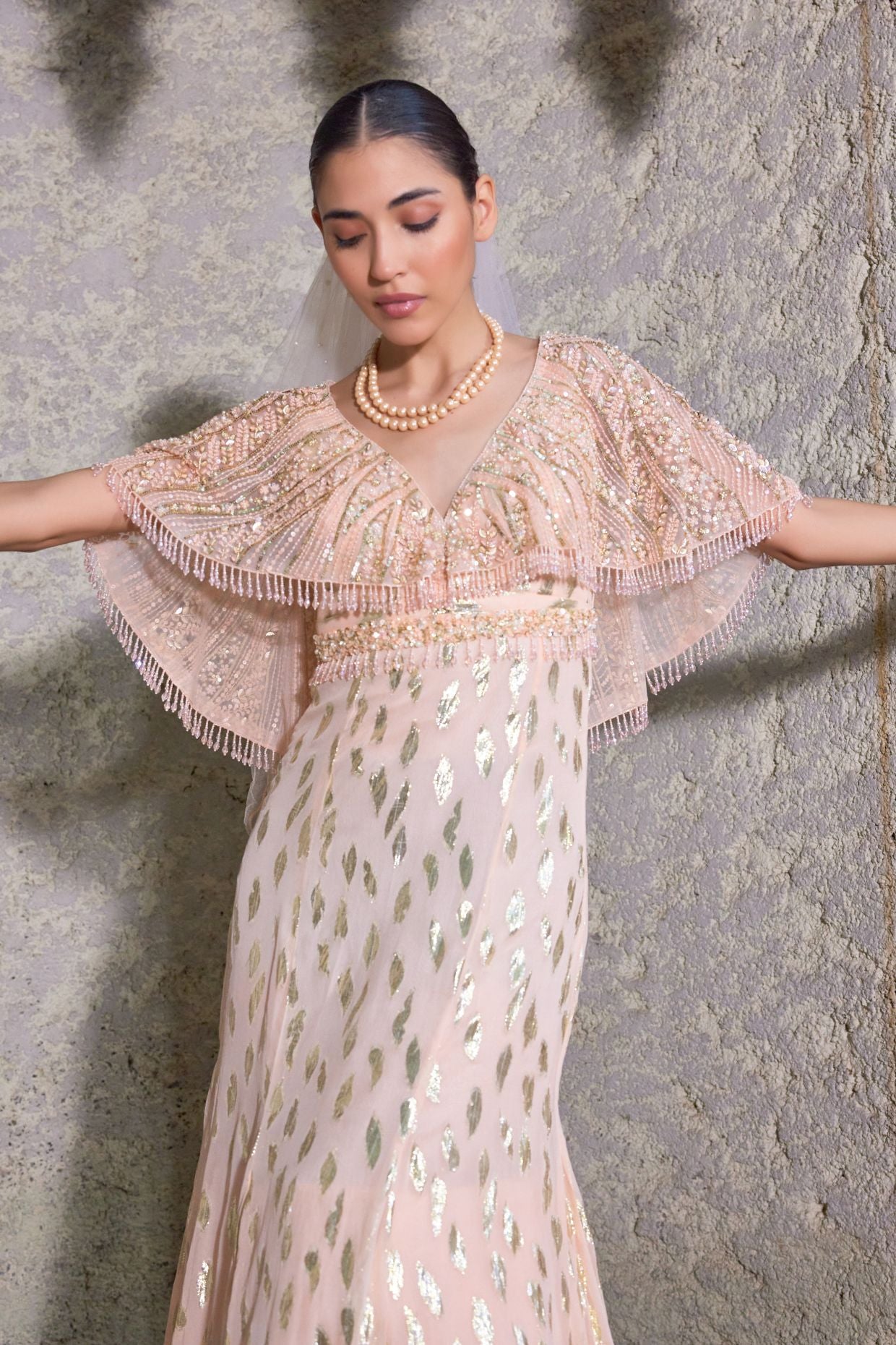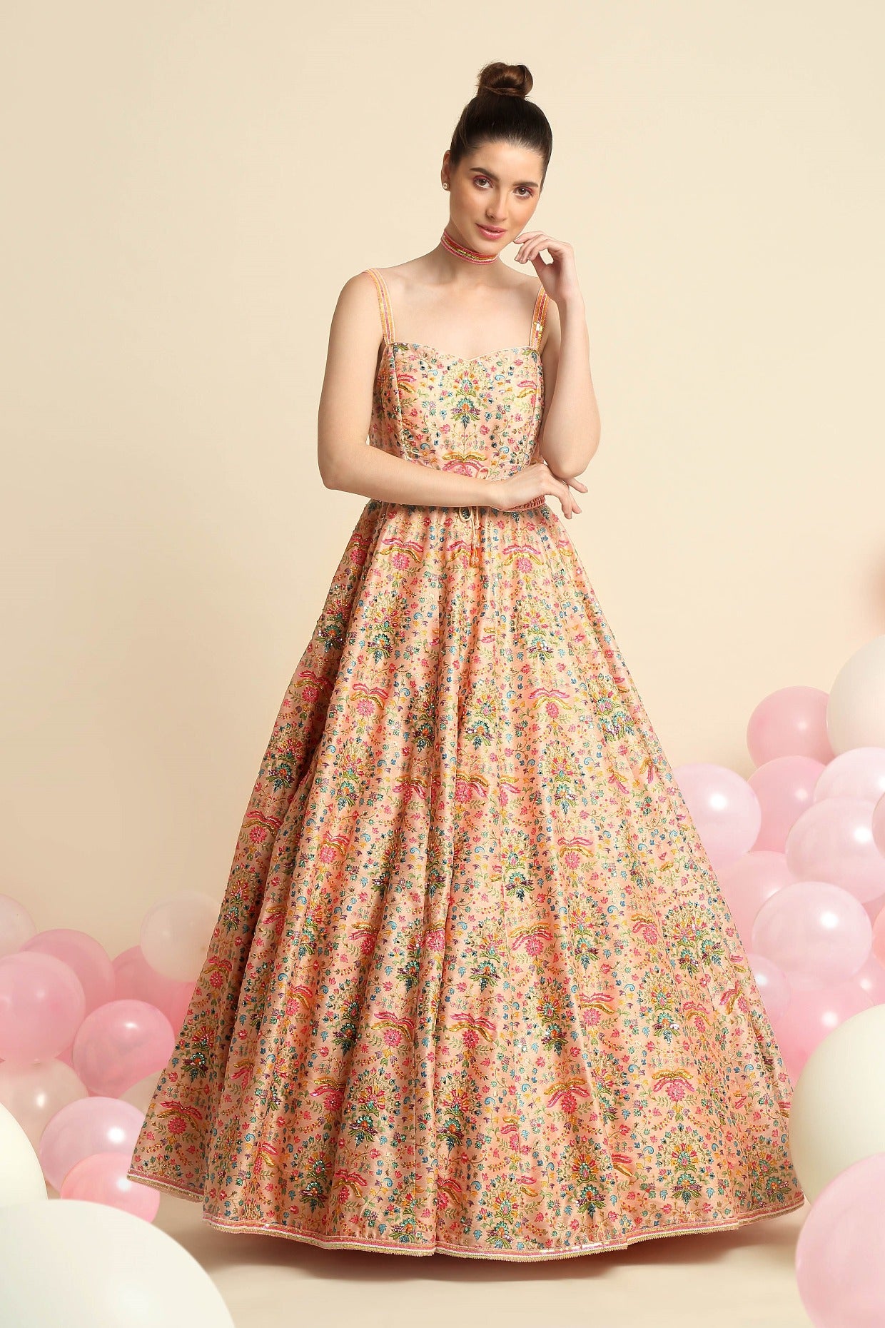 Peach Pink Printed & Embroidered Gown Peach Pink Printed & Embroidered Gown