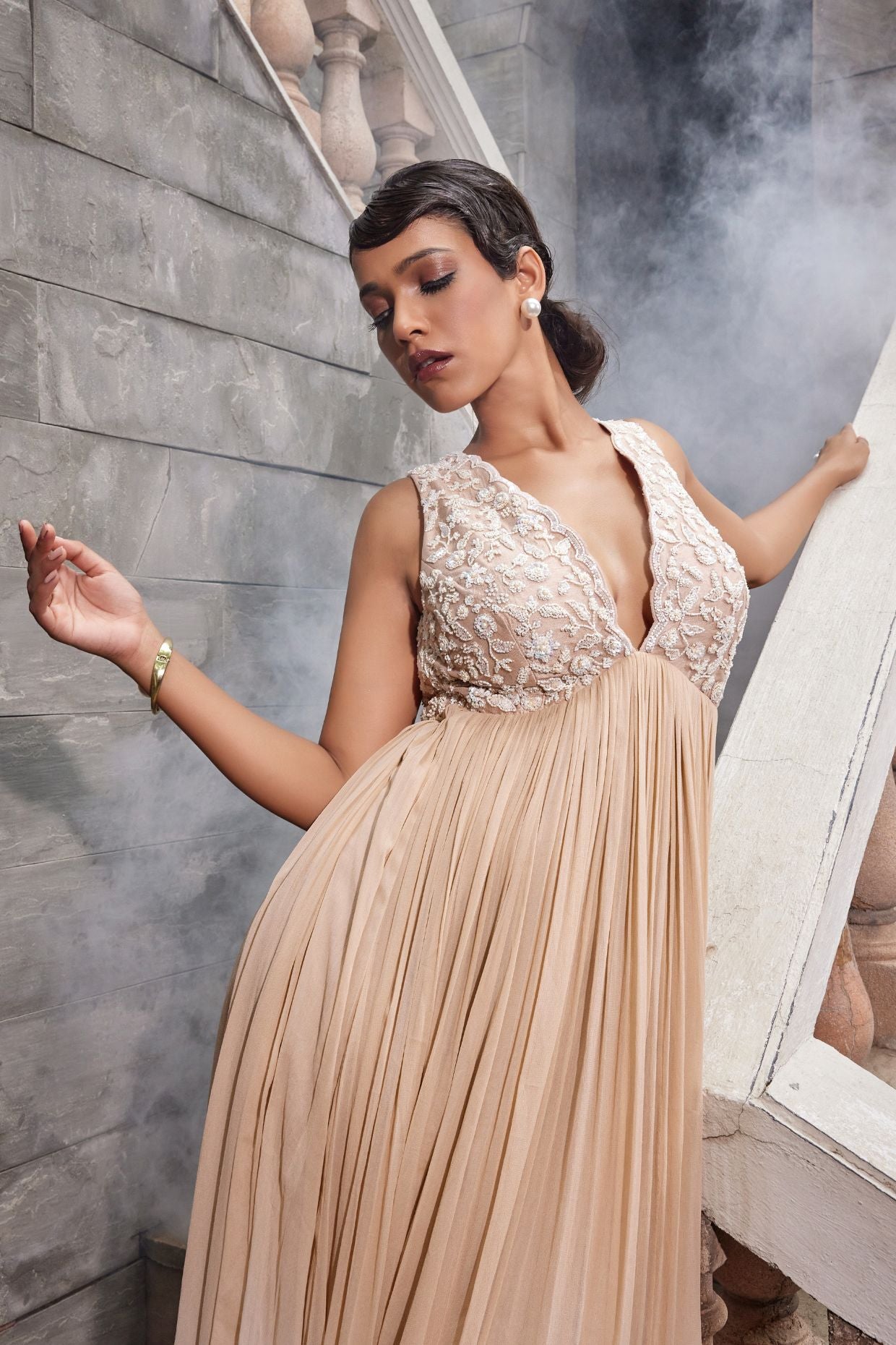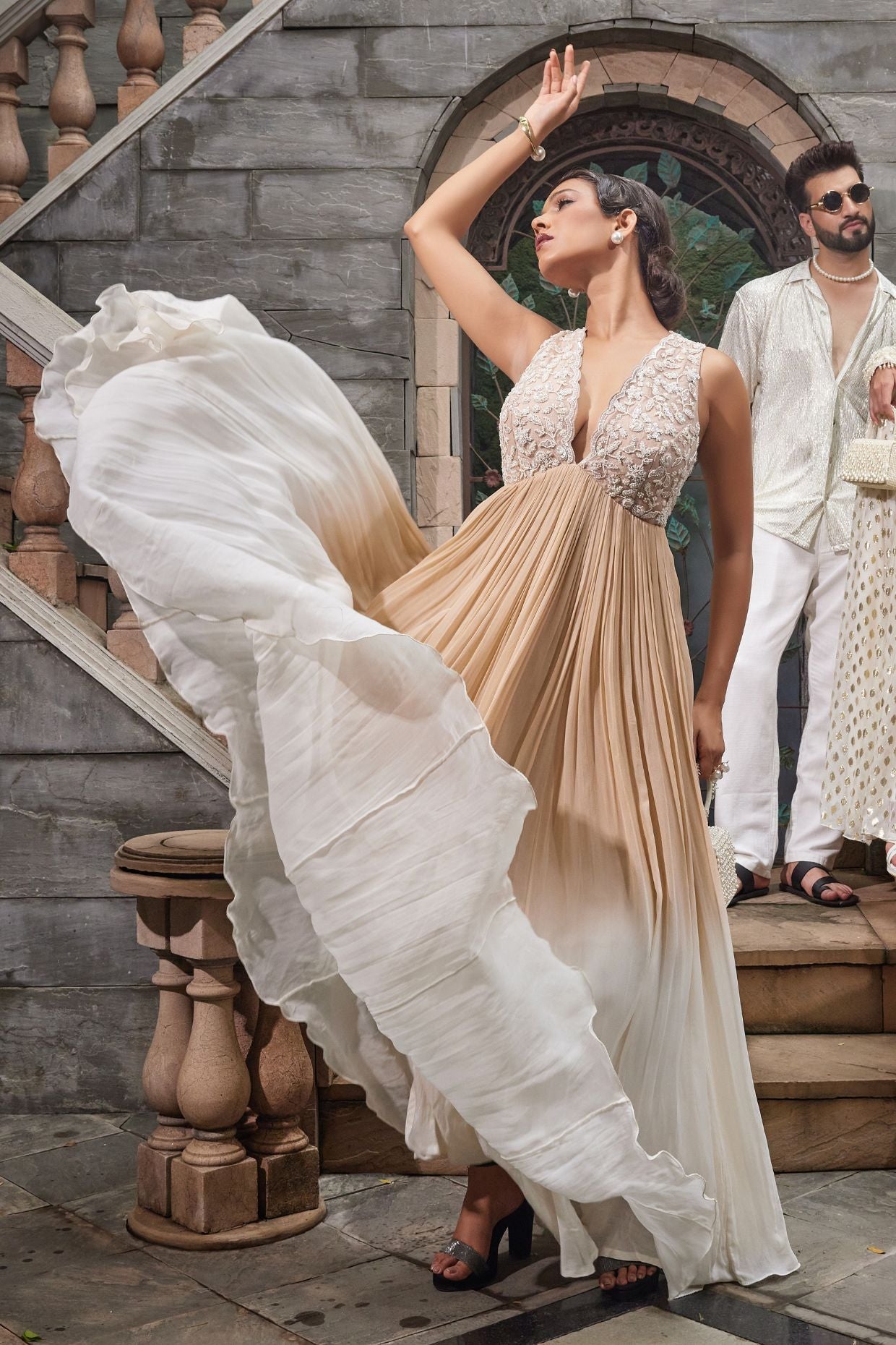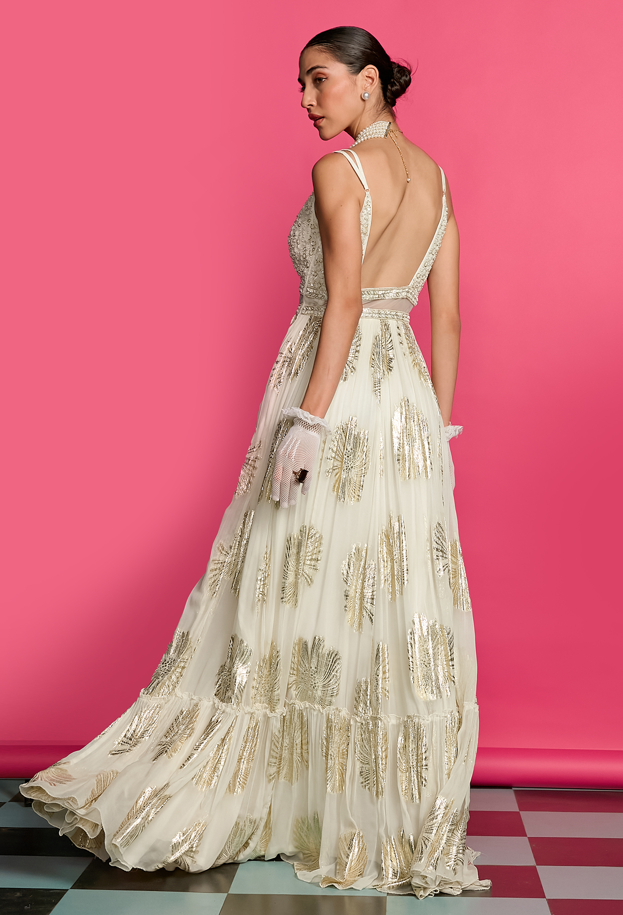 Rs. 80,600.00Peach Pink Printed & Embroidered Gown