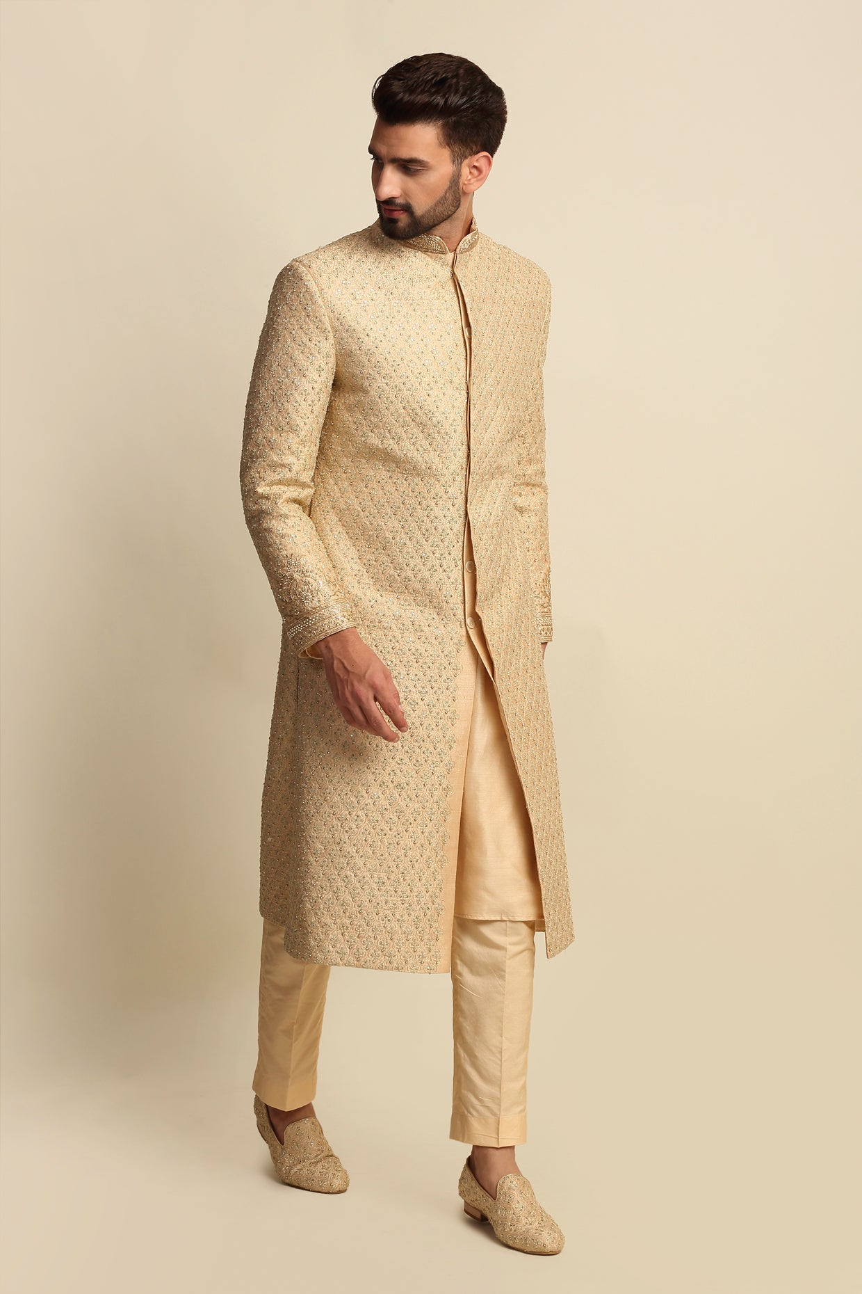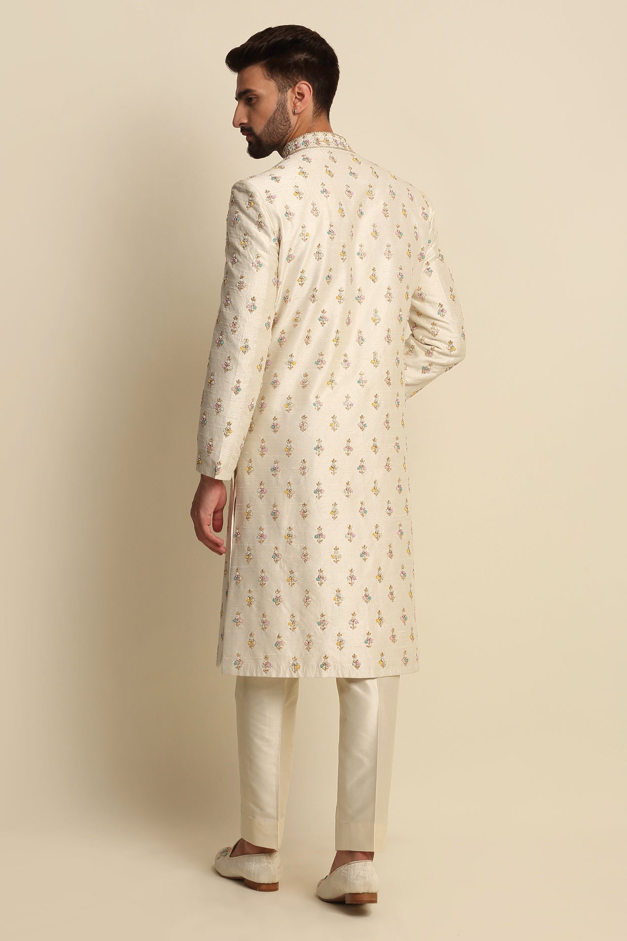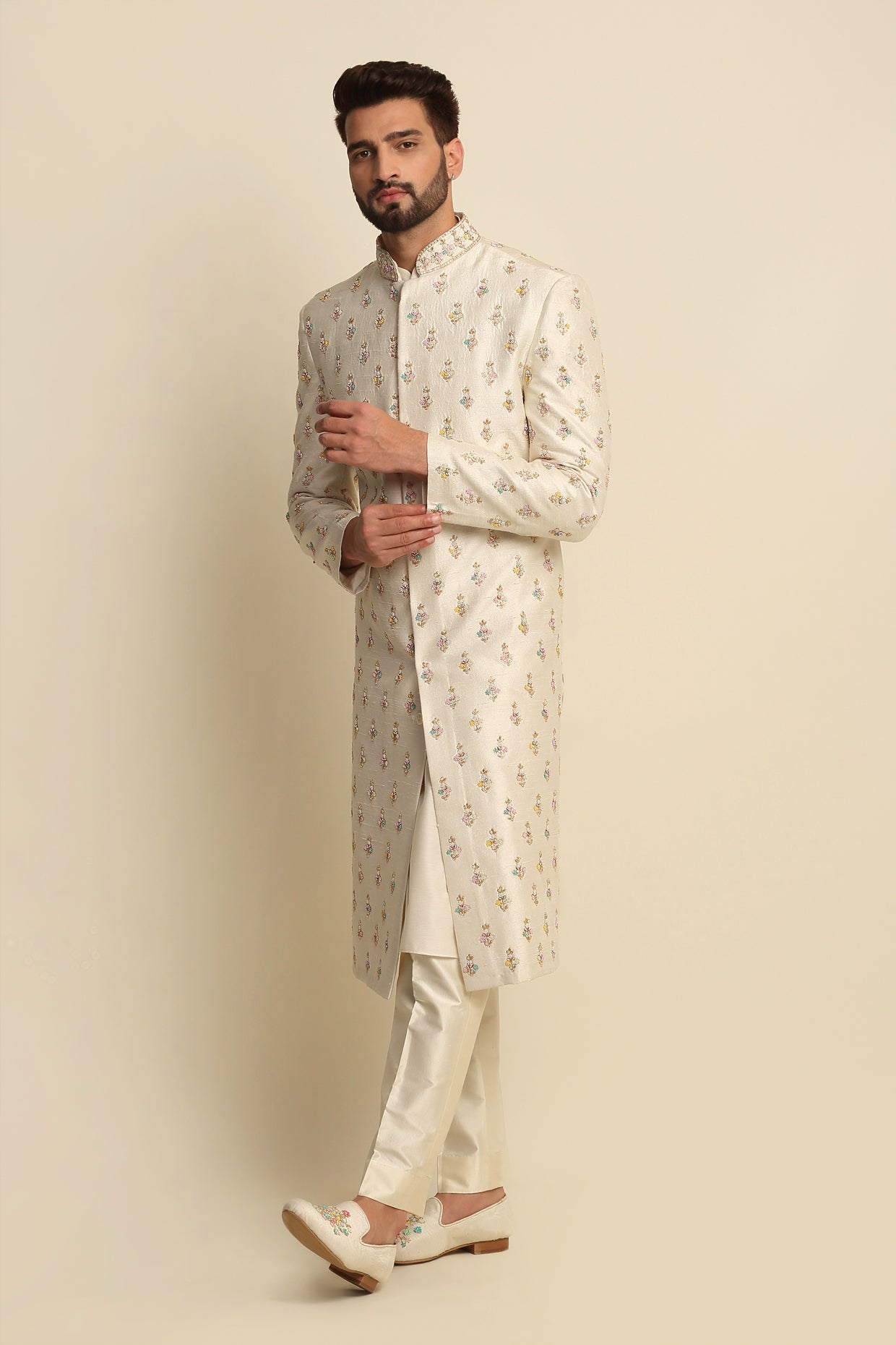 Cream Multicolored Embroidered Sherwani Set Cream Multicolored Embroidered Sherwani Set