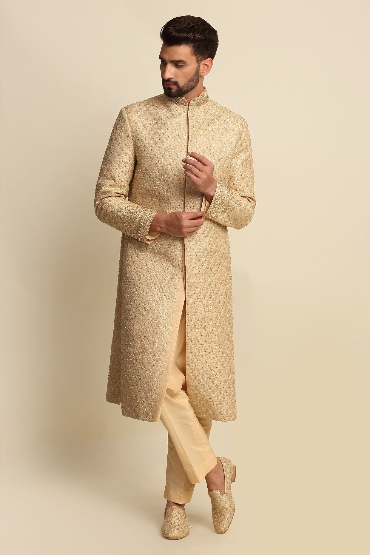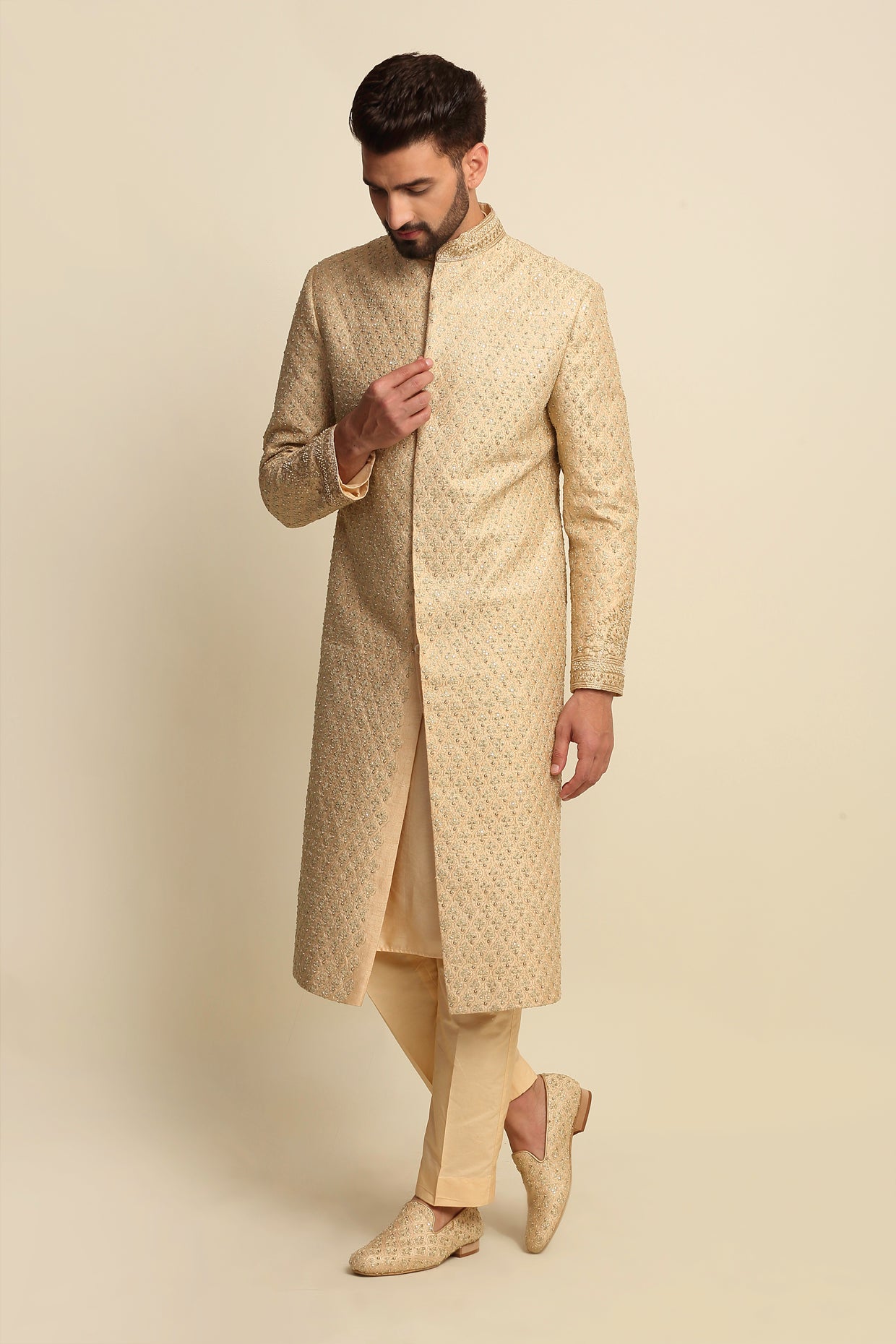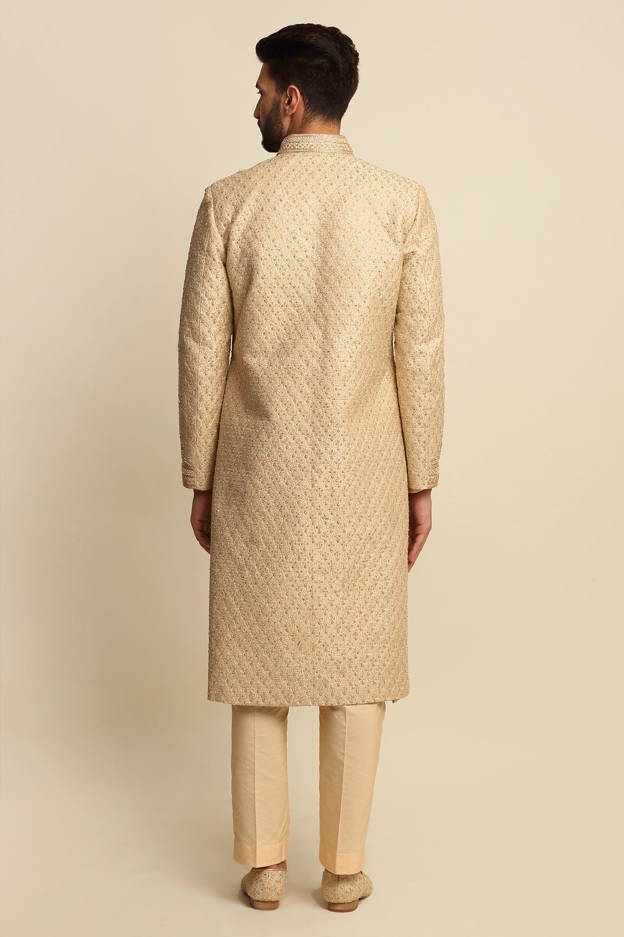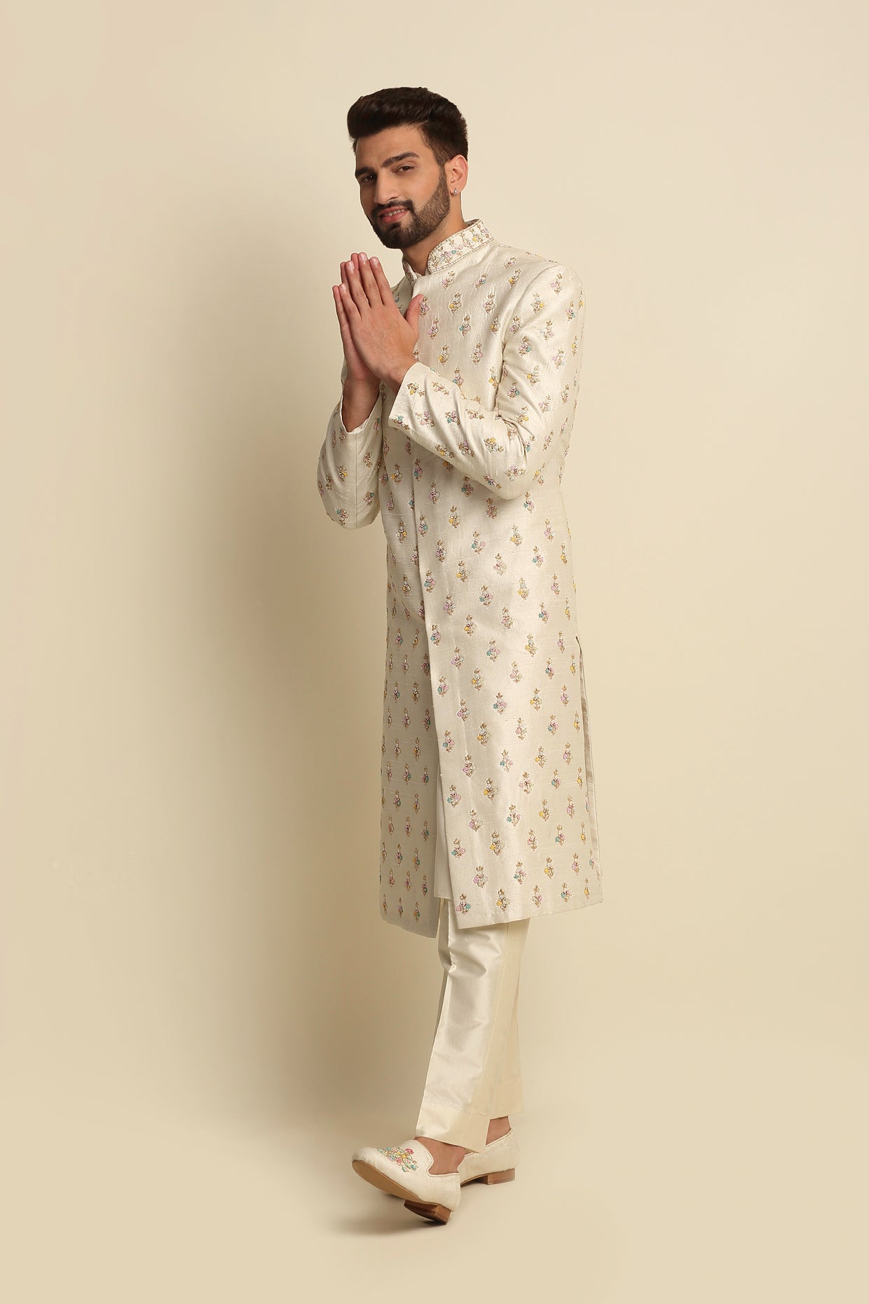 Classic Ivory Embroidered Sherwani Set Classic Ivory Embroidered Sherwani Set