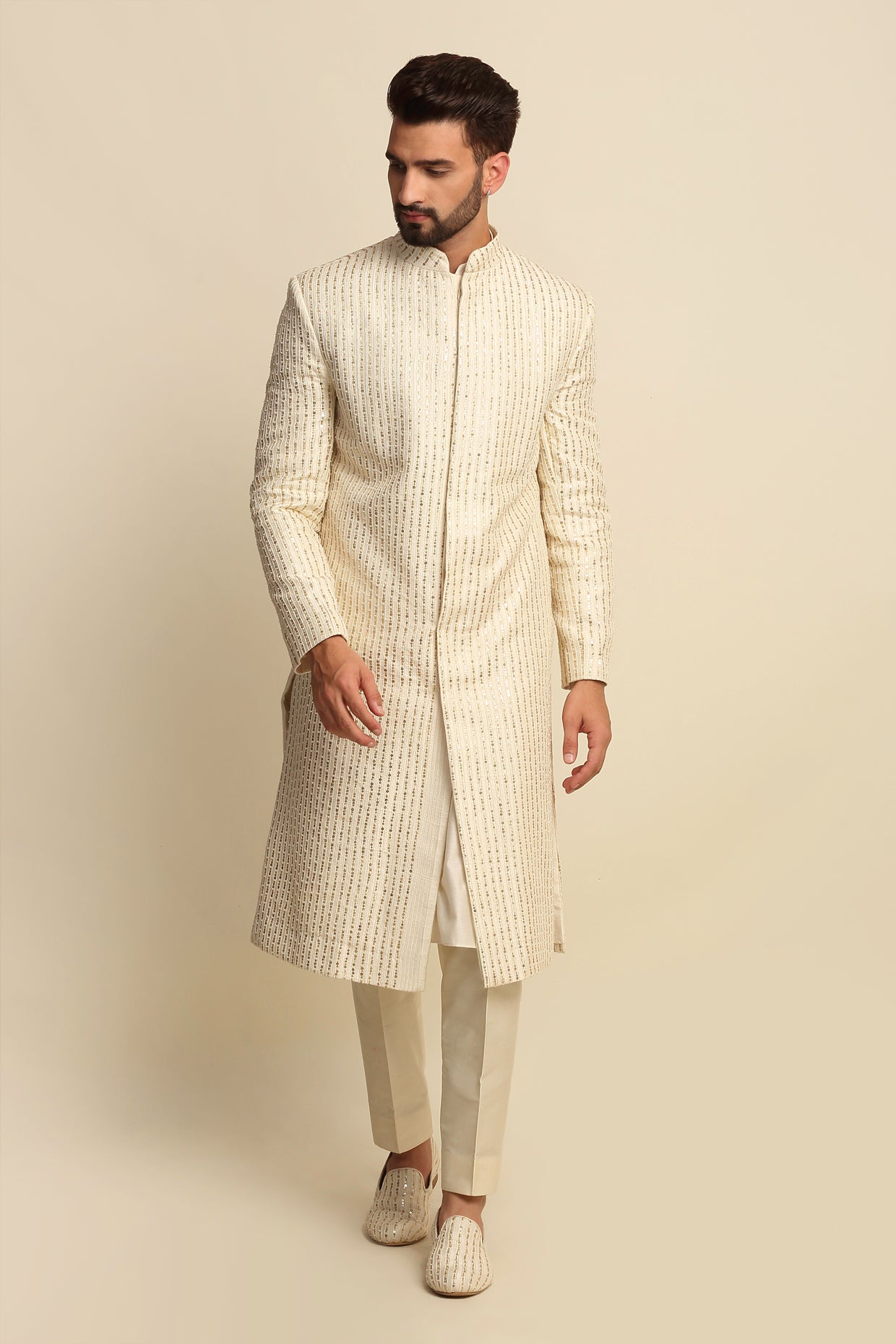 Ivory Sequence Embridered Sherwani Set Ivory Sequence Embridered Sherwani Set
