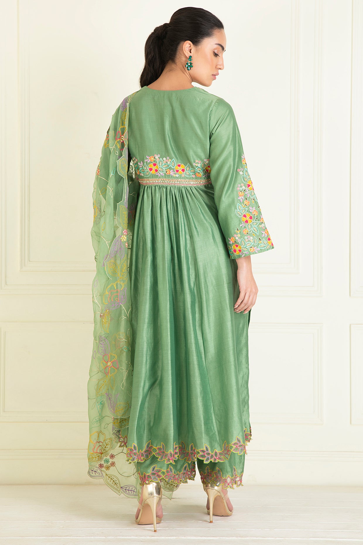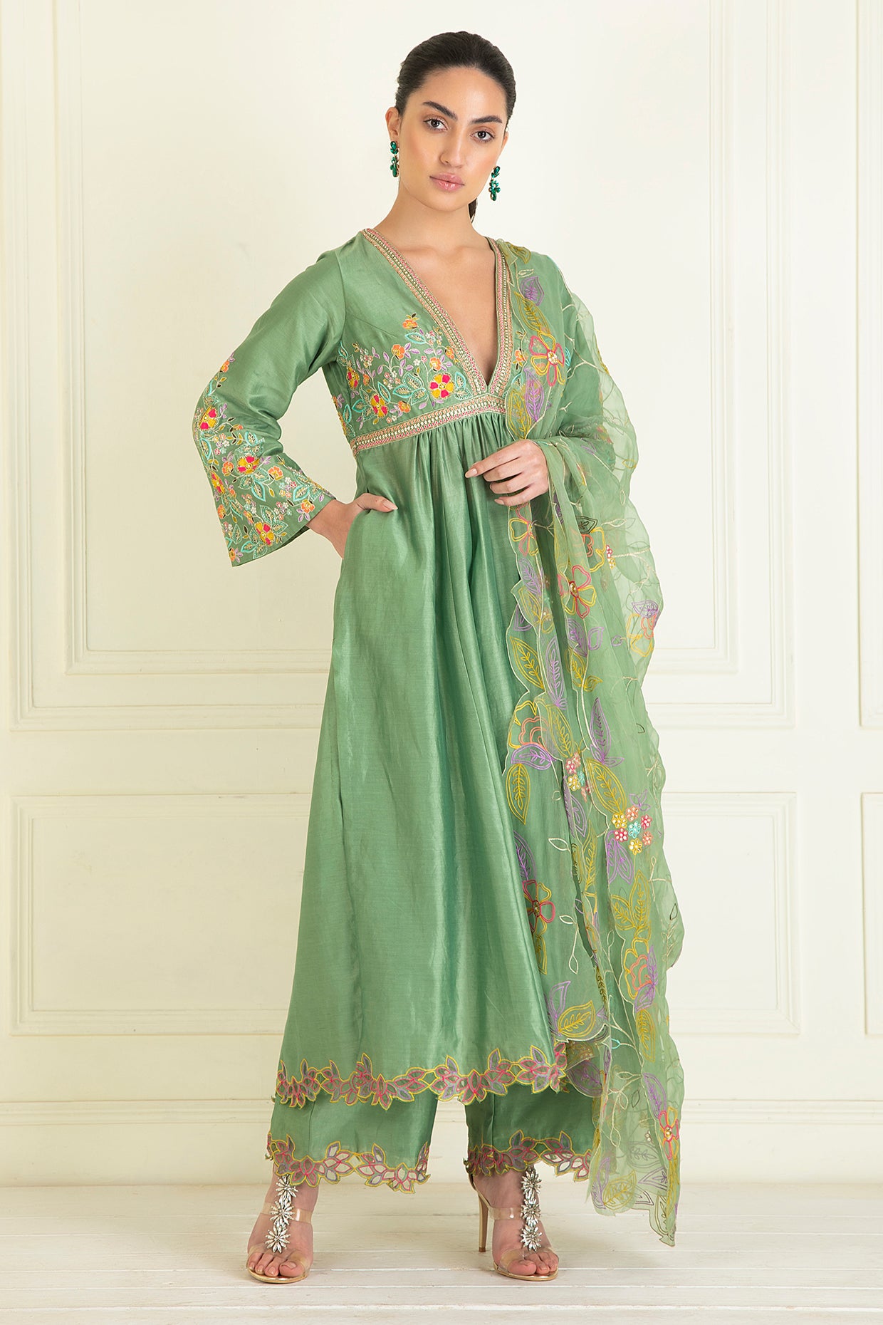 Sage Green Embroidered Chanderi Suit Set Sage Green Embroidered Chanderi Suit Set