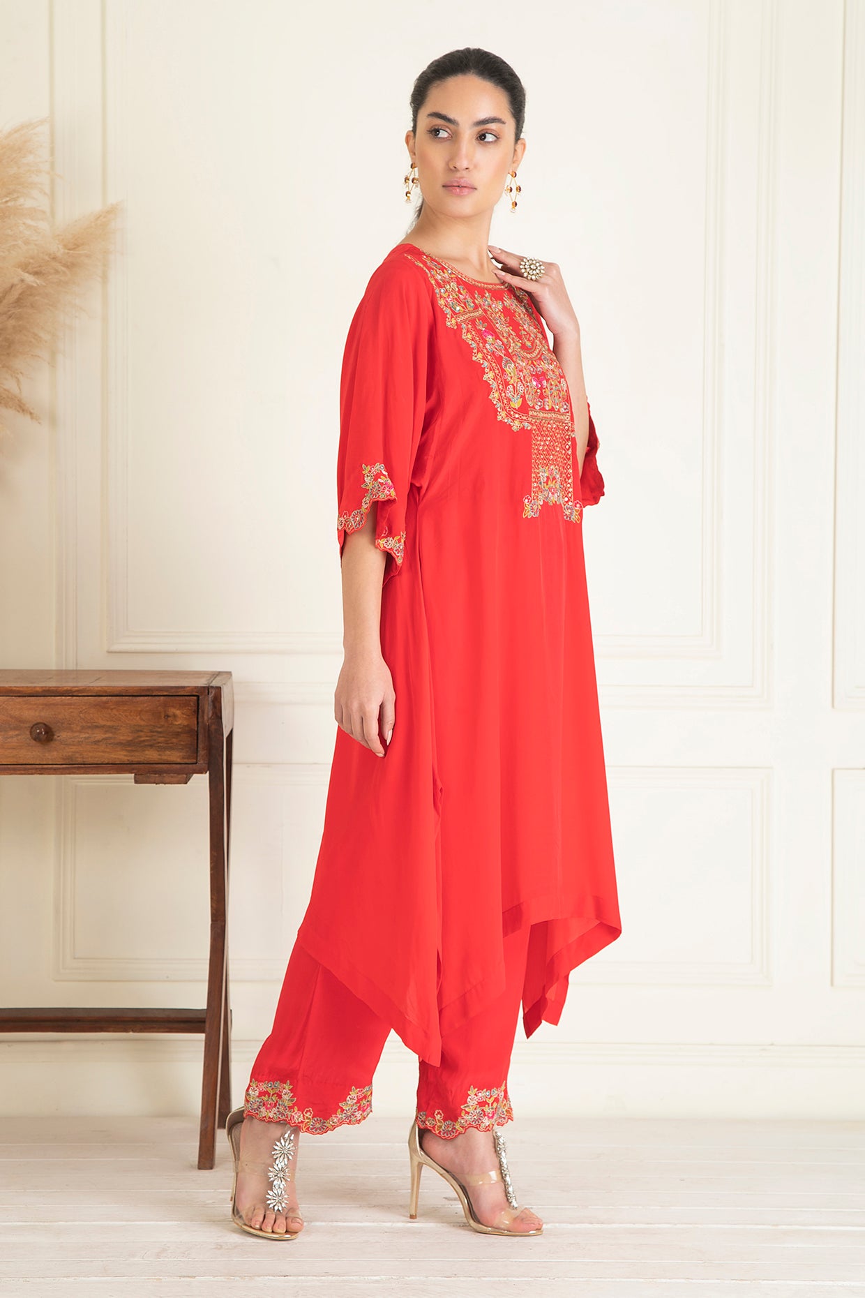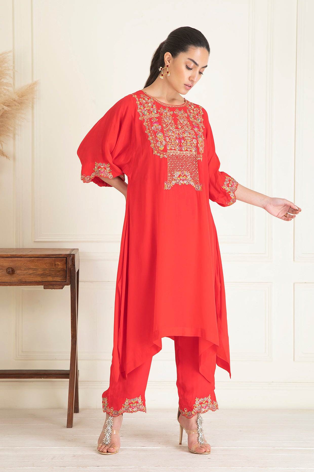Peachy Orange Loose Comfort Fitted Embroidered Co-Ord Set Peachy Orange Loose Comfort Fitted Embroidered Co-Ord Set