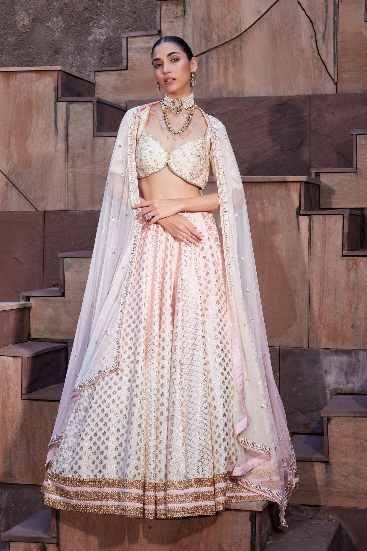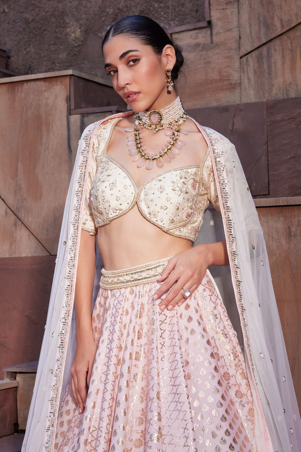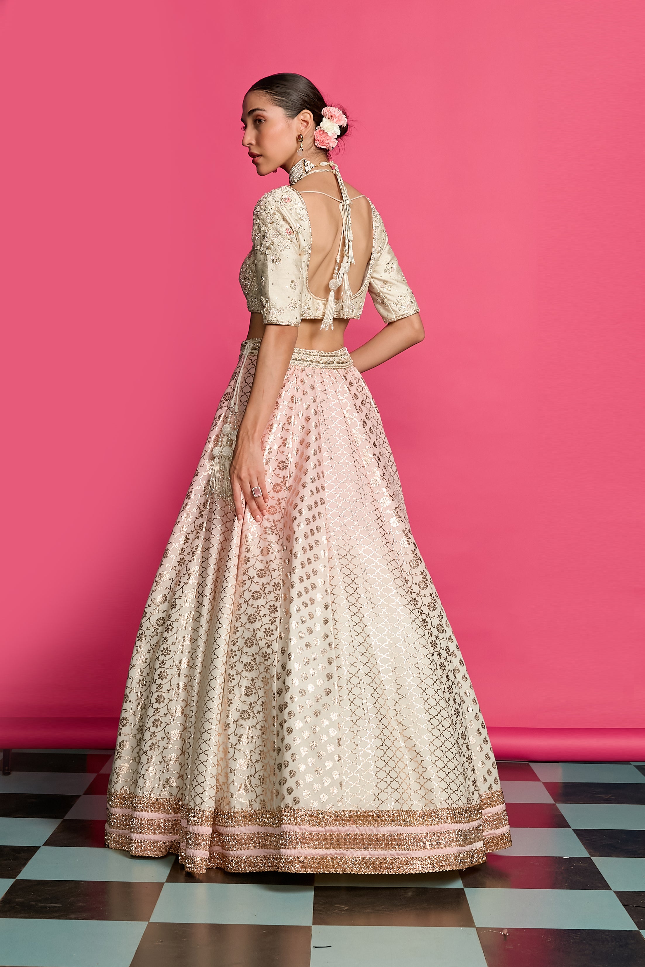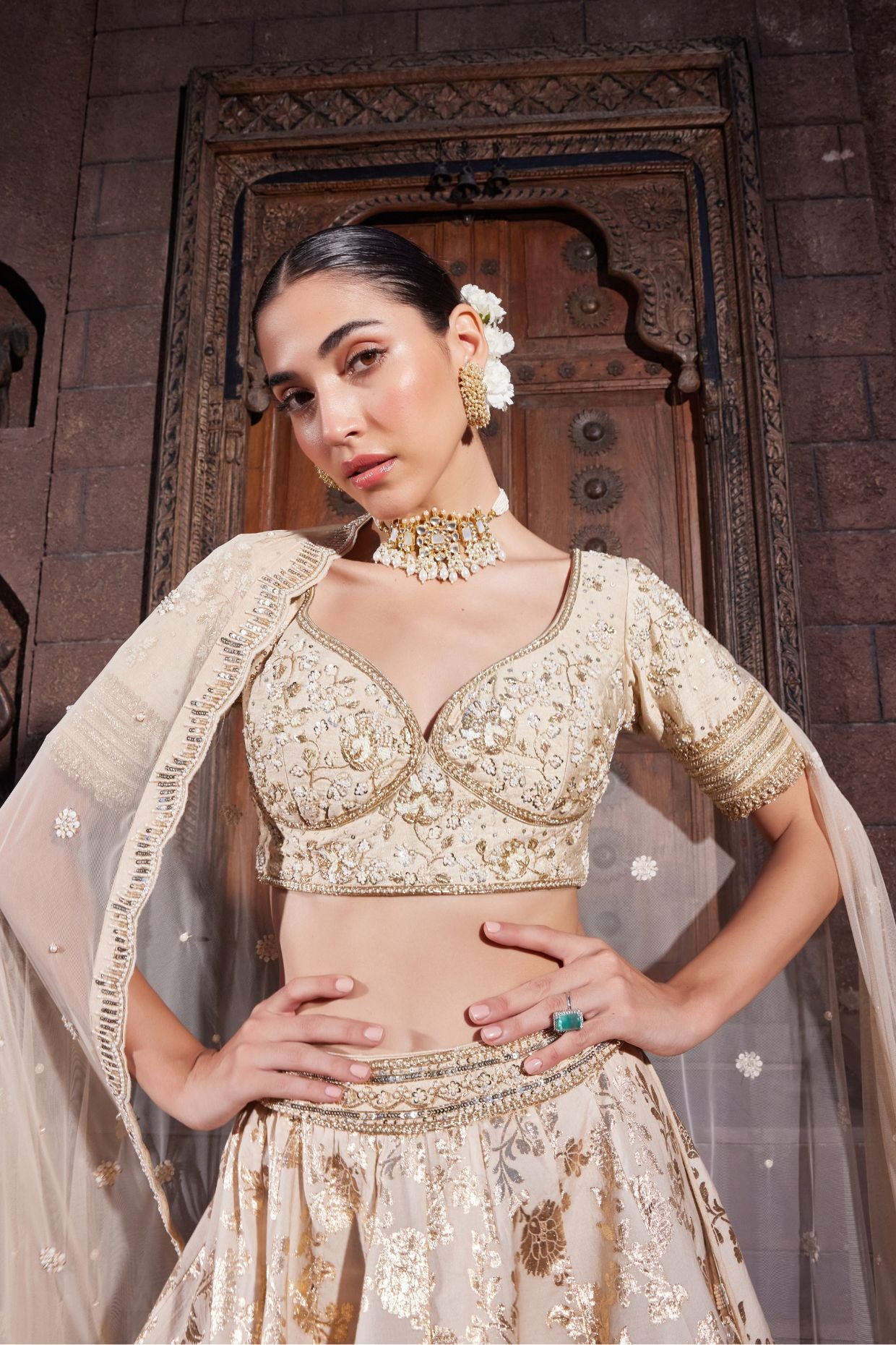 Rs. 91,600.00Sheen Green Pure Raw Silk Lehenga Set