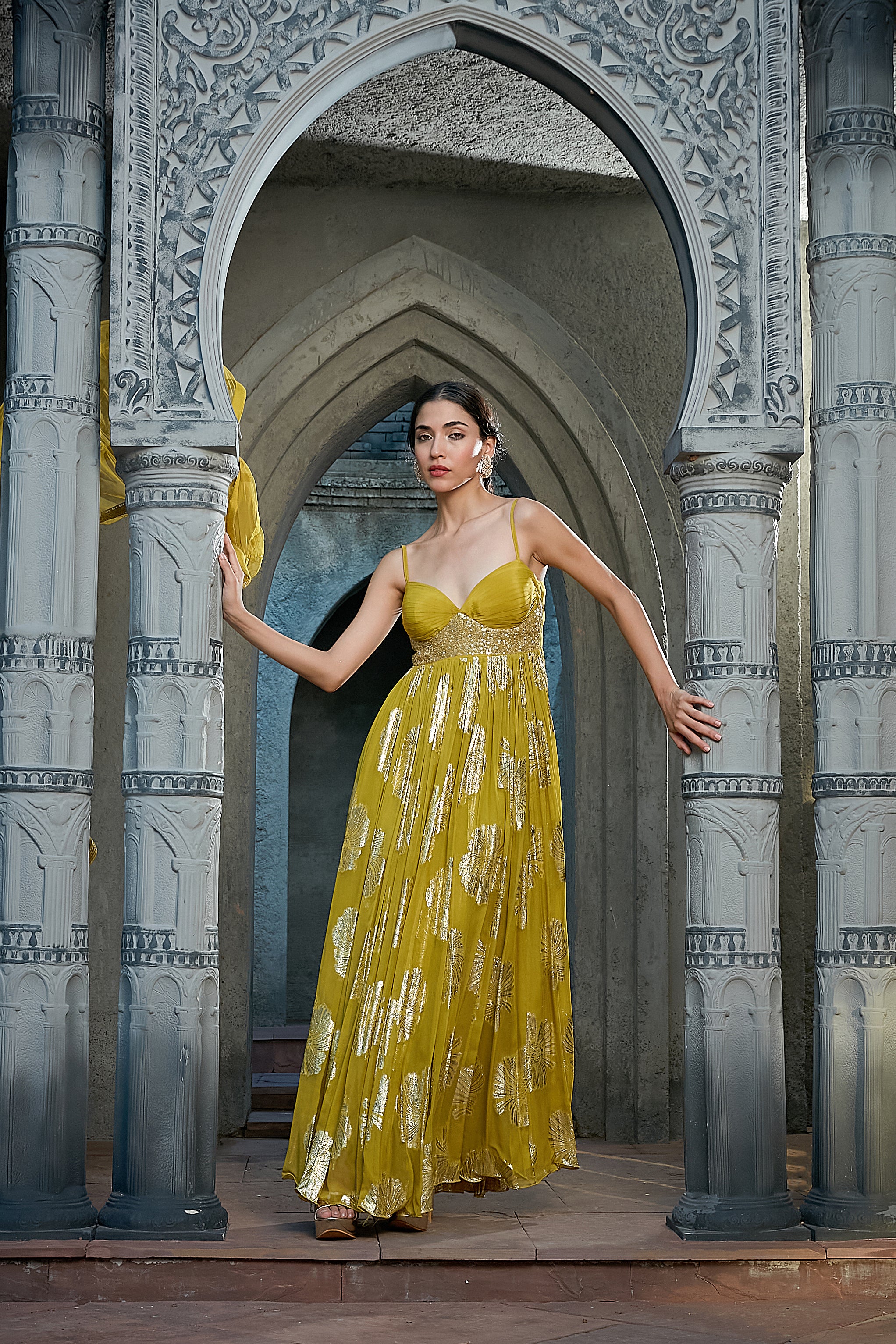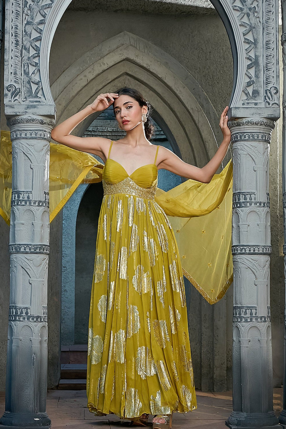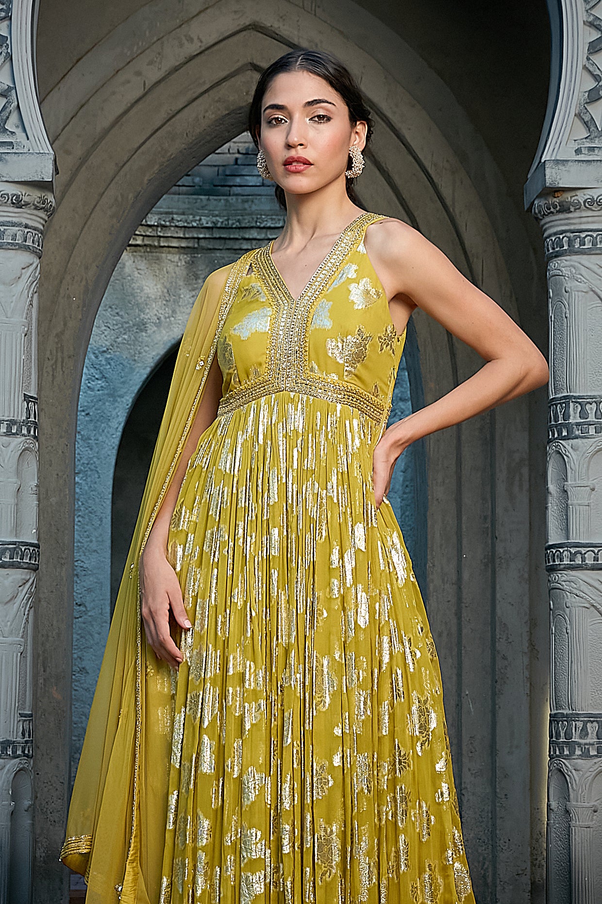 Yellow Crinkle Ombre Dyed Anarkali Set Yellow Crinkle Ombre Dyed Anarkali Set