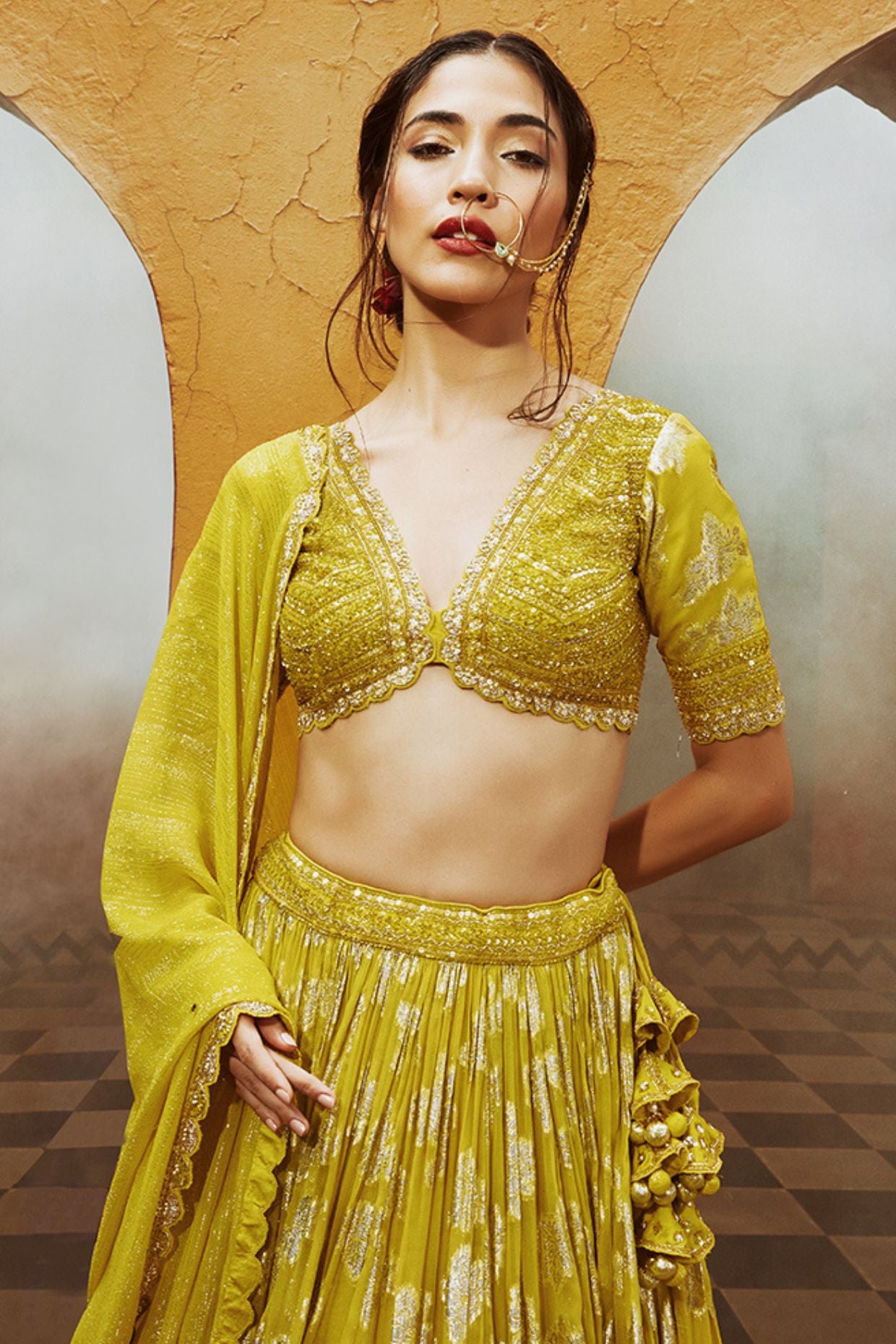Sheen Green Pure Raw Silk Lehenga Set Sheen Green Pure Raw Silk Lehenga Set