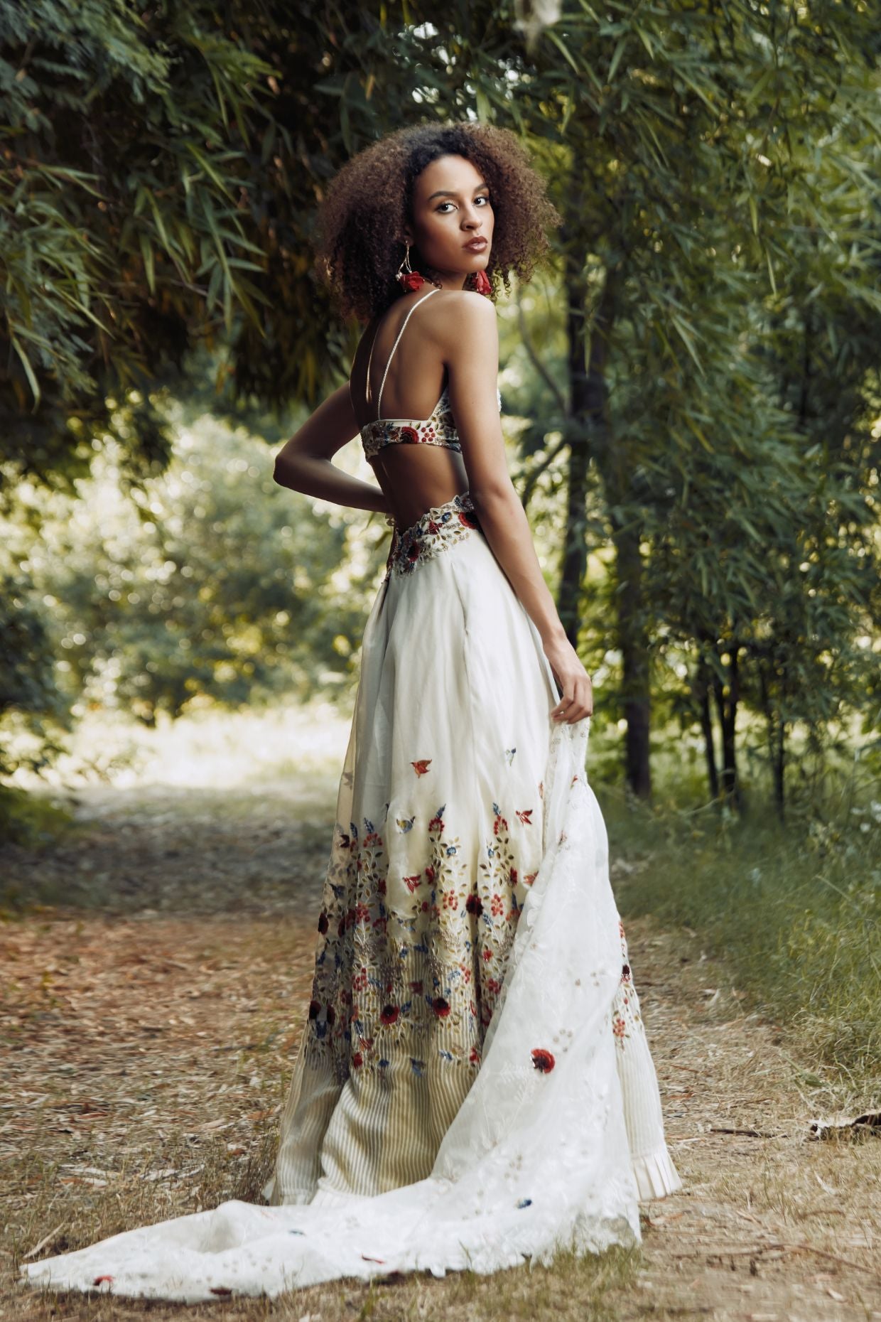 Ivory Lehenga With Multicoloured Embroidered Blouse And Dupatta Ivory Lehenga With Multicoloured Embroidered Blouse And Dupatta