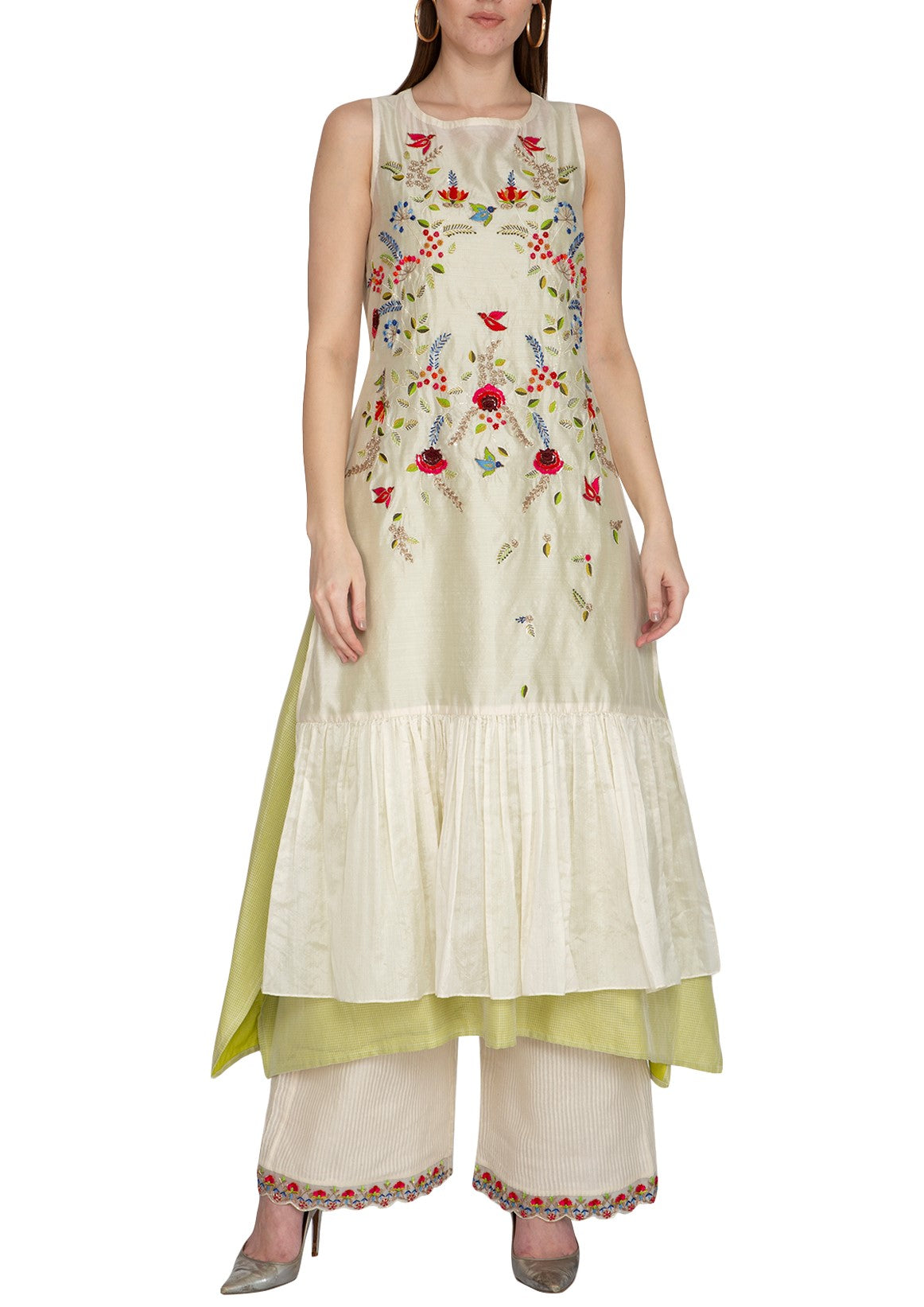 Ivory Multi-Colored Embroidered Kurta Set Ivory Multi-Colored Embroidered Kurta Set