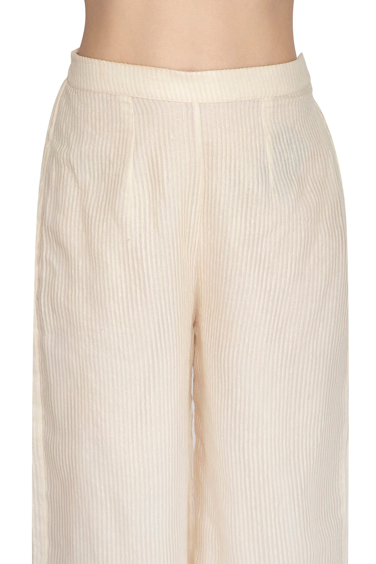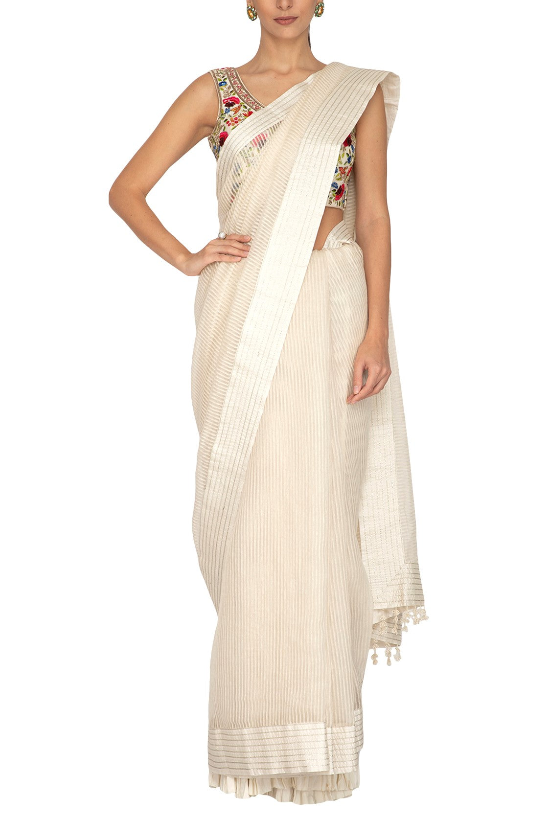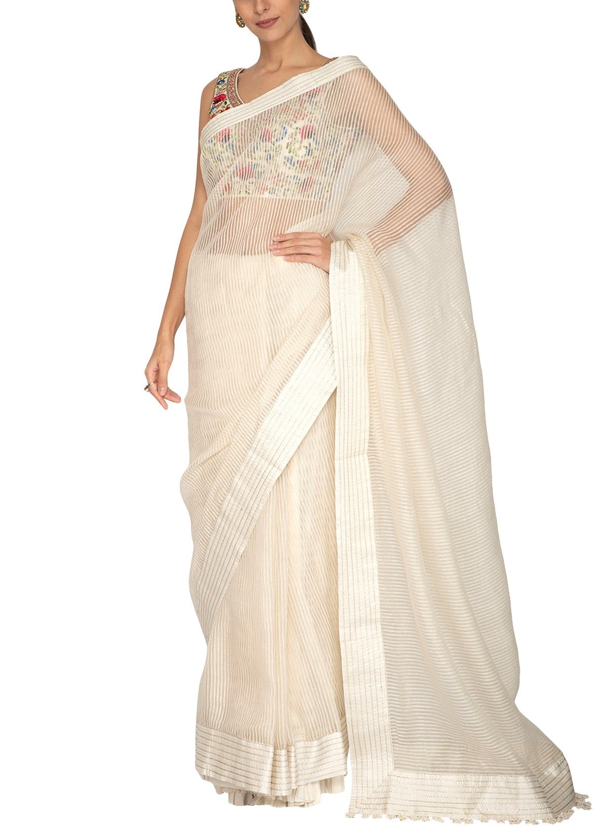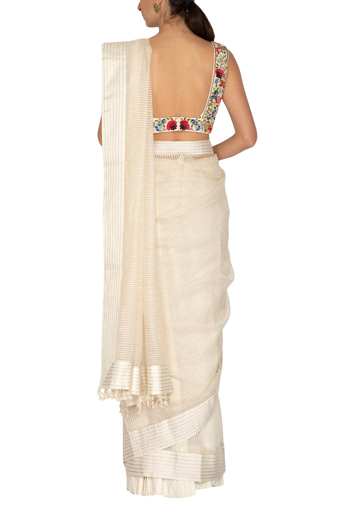 Ivory Stripe Saree With Embroidered Blouse Ivory Stripe Saree With Embroidered Blouse