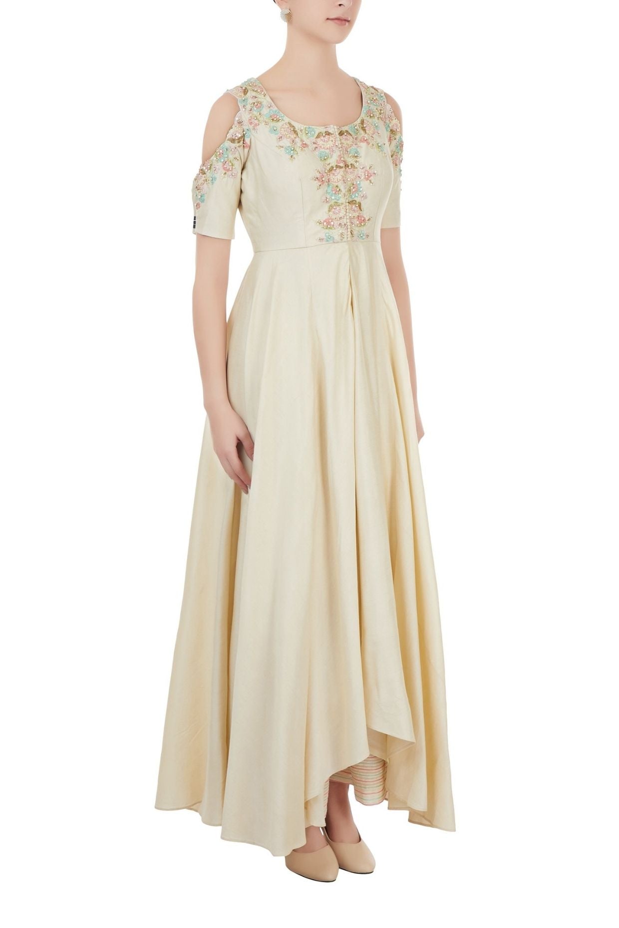 Ivory Multi Colored Anarkali Dress Online Ivory Multi Colored Anarkali Dress Online