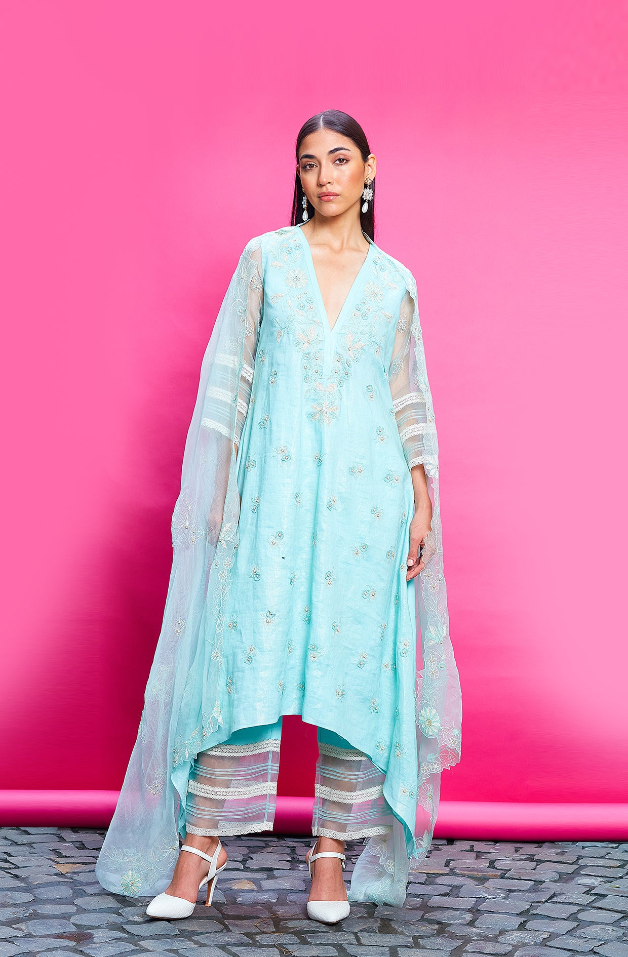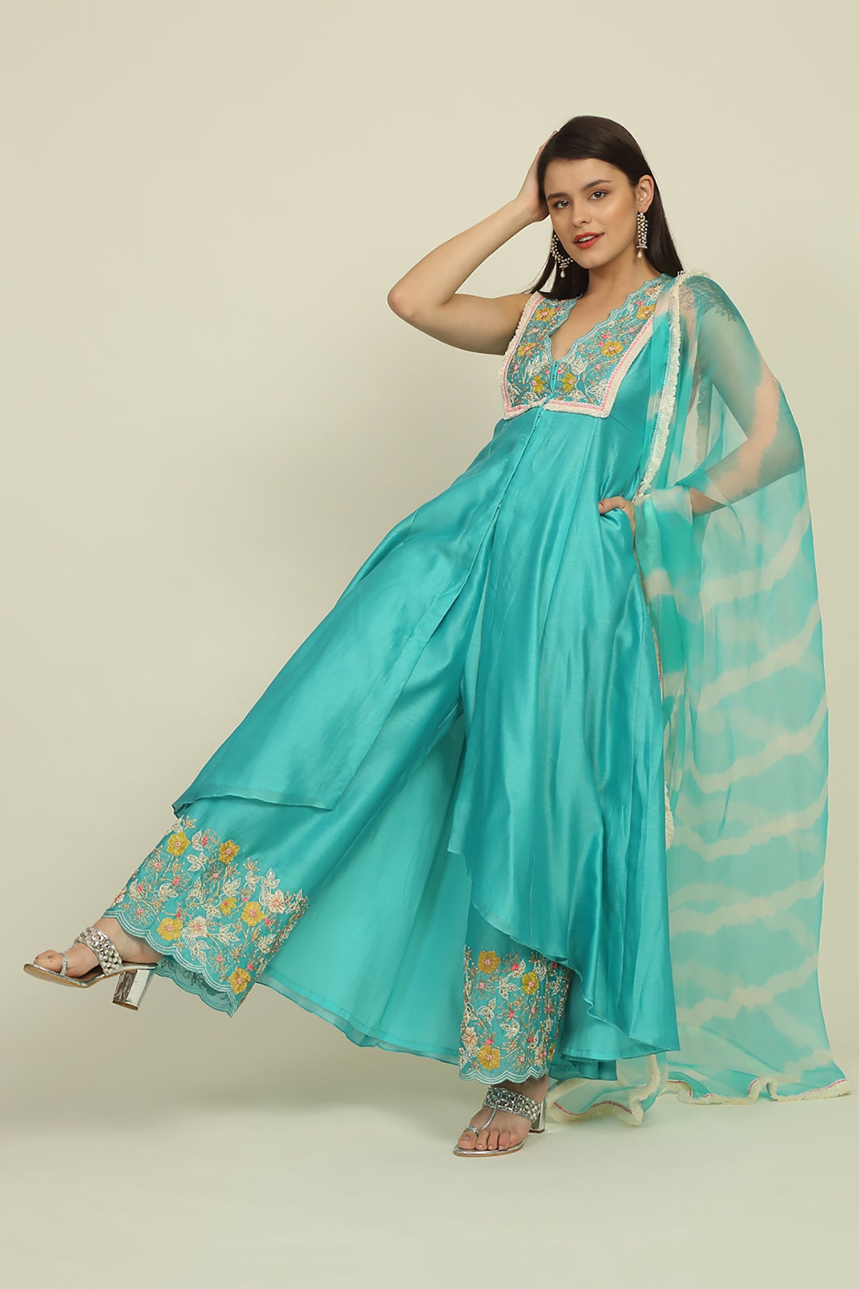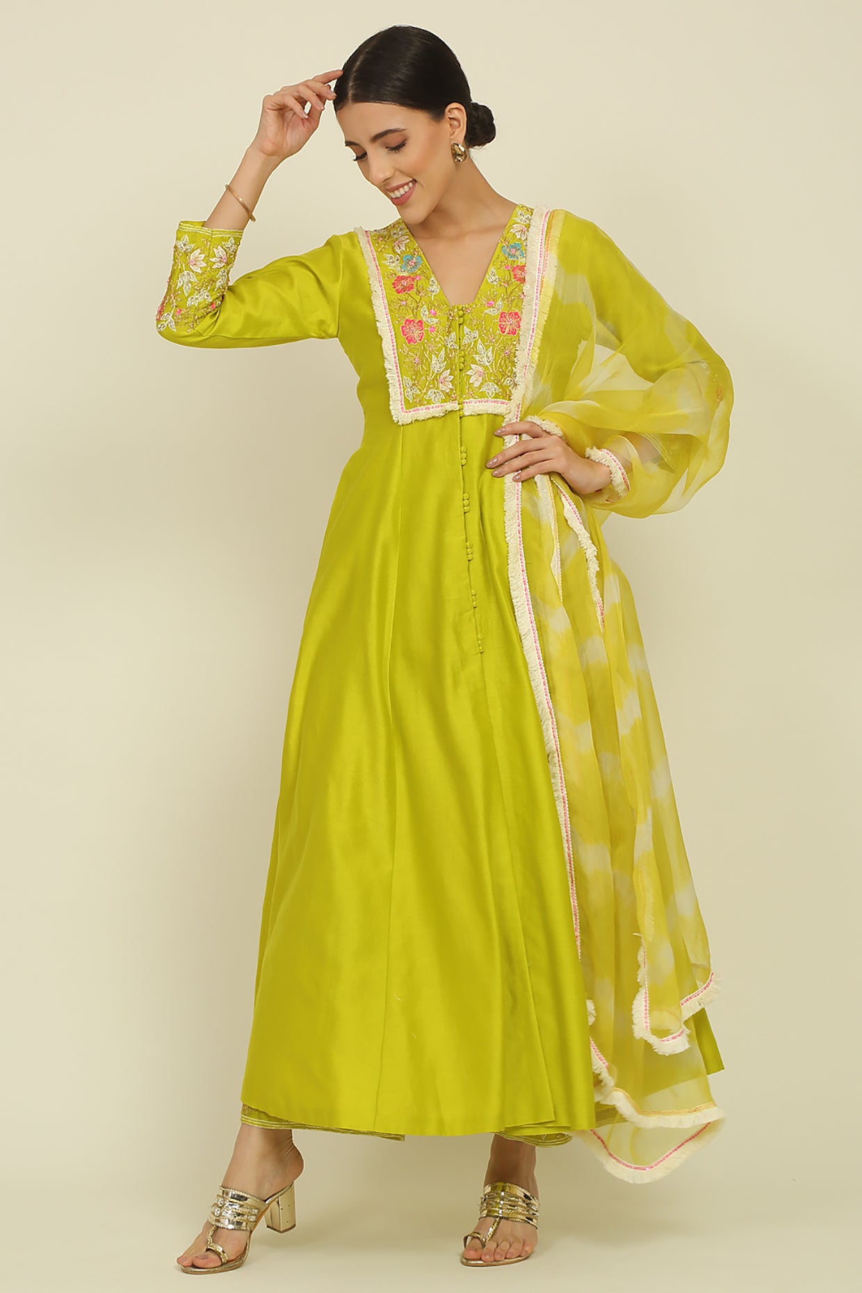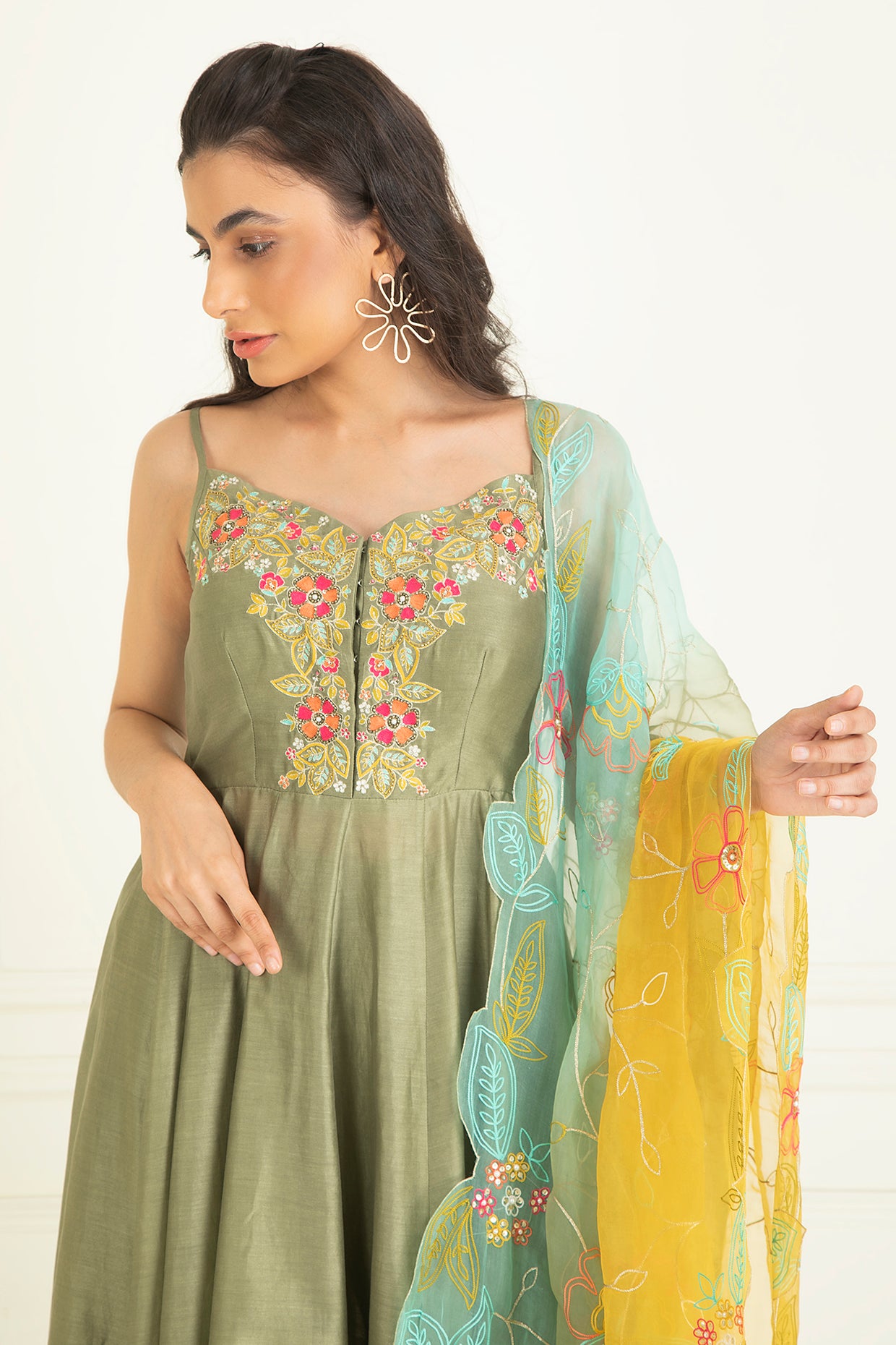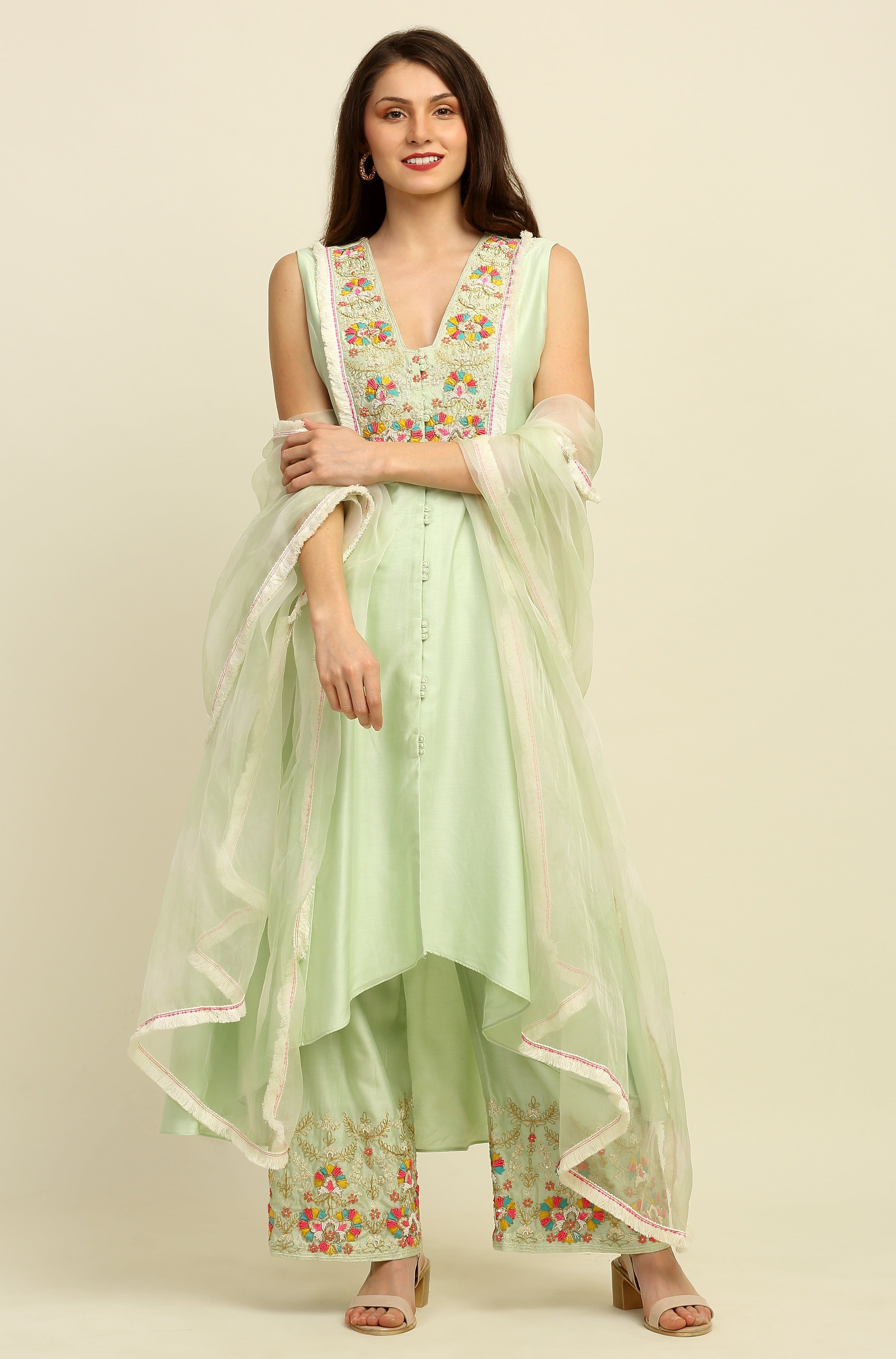 Sage Green Embroidered Chanderi Suit Set Sage Green Embroidered Chanderi Suit Set