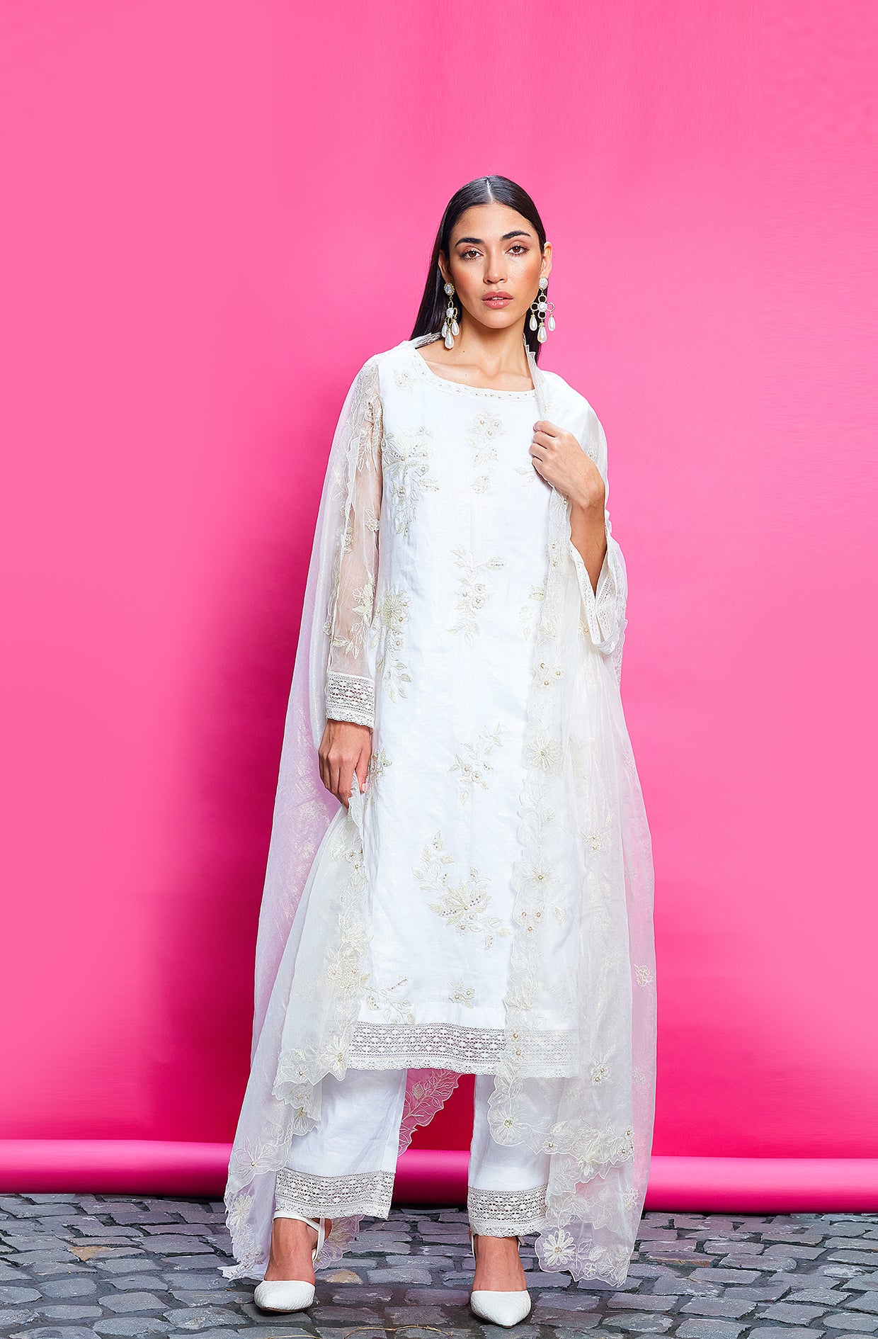 Rs. 32,600.00Grey Embroidered Chanderi Anarkali Set