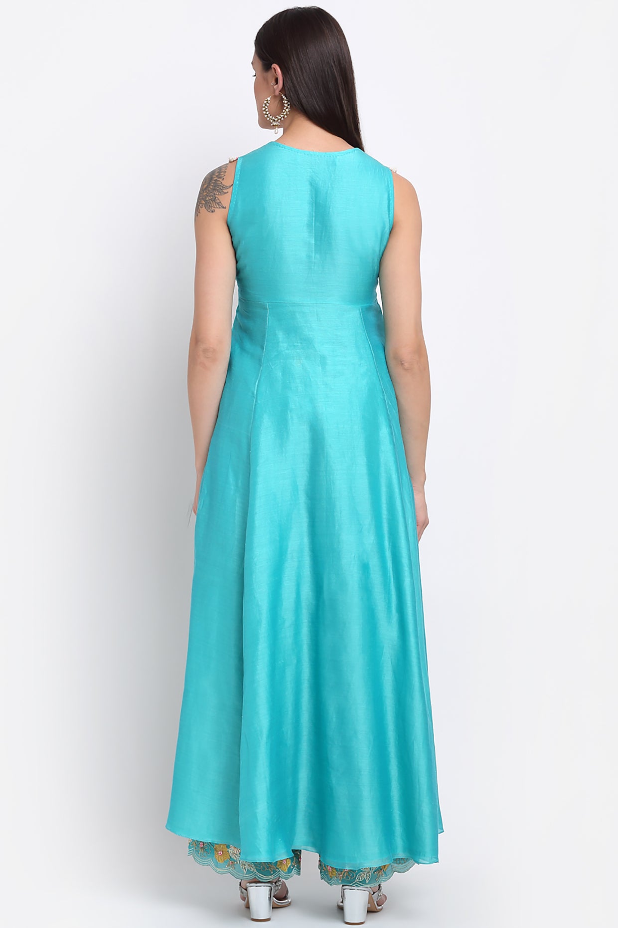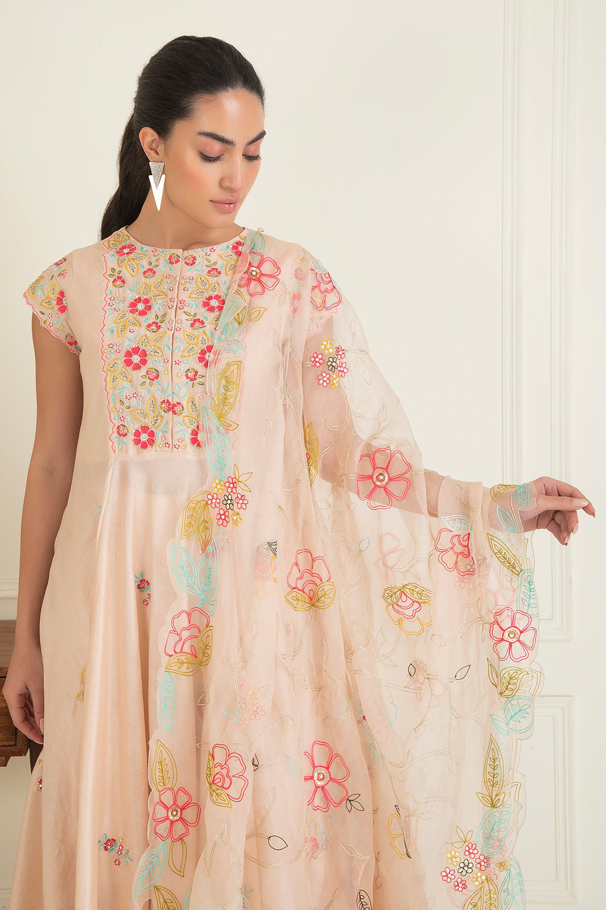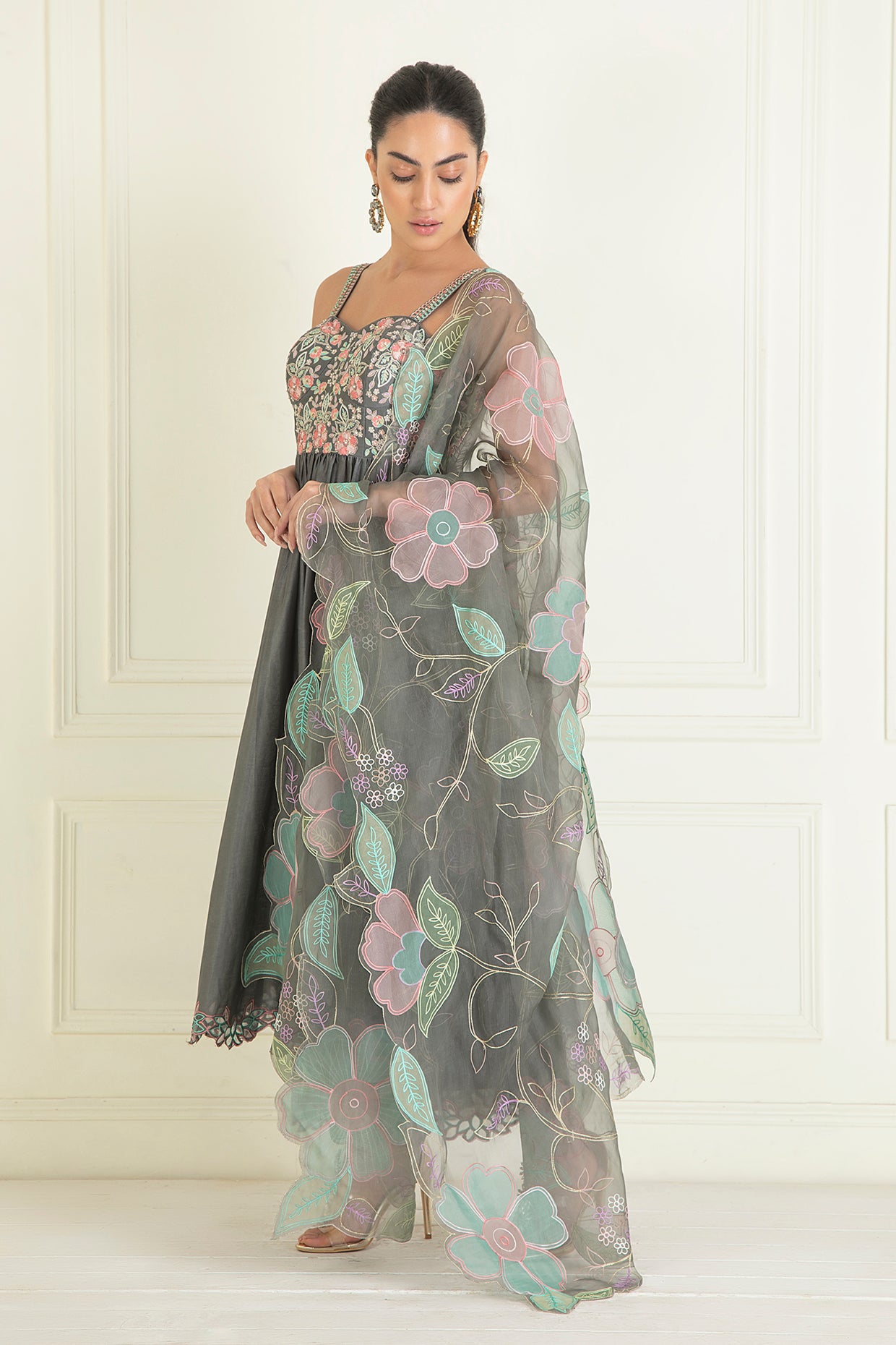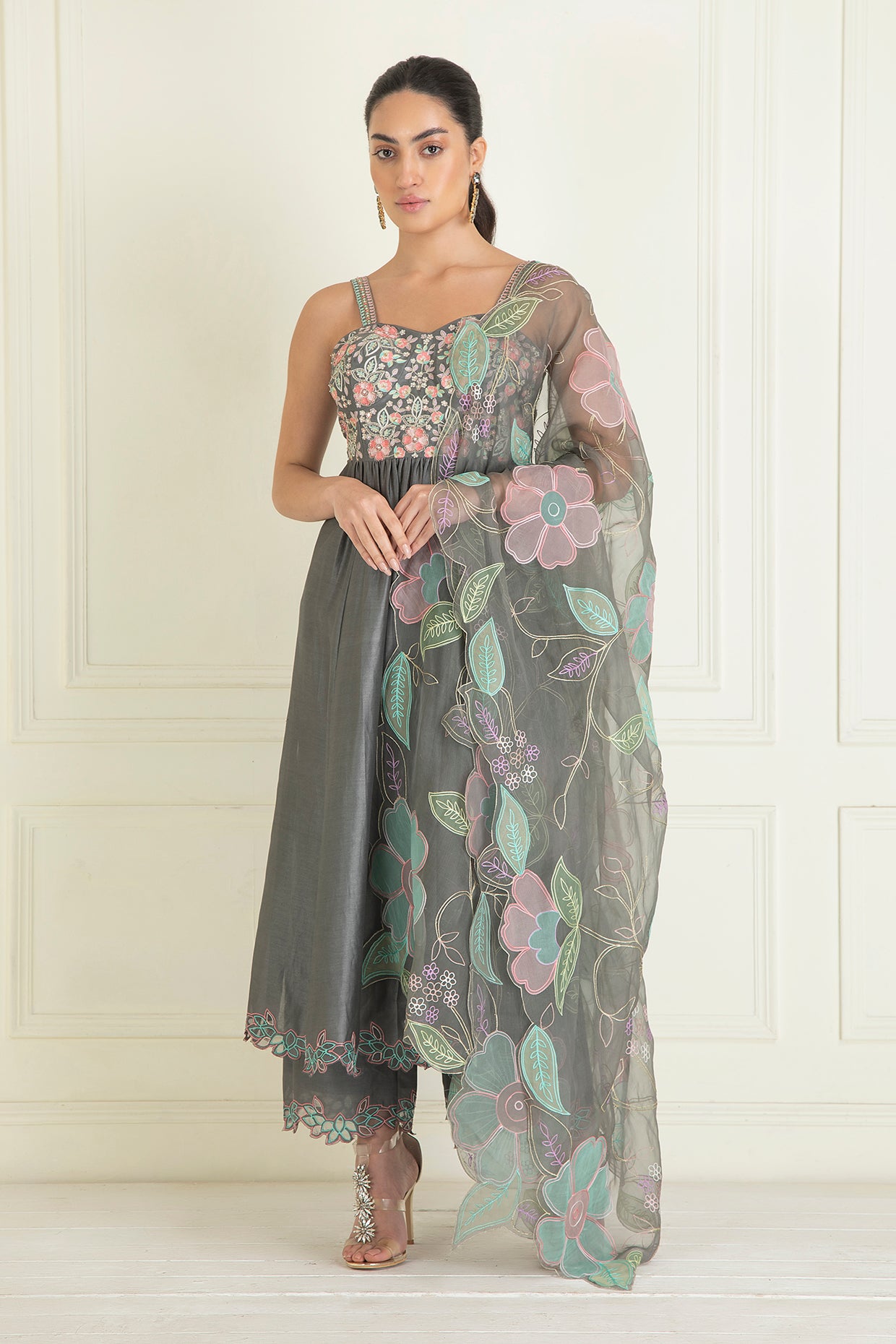 Grey Embroidered Chanderi Anarkali Set Grey Embroidered Chanderi Anarkali Set