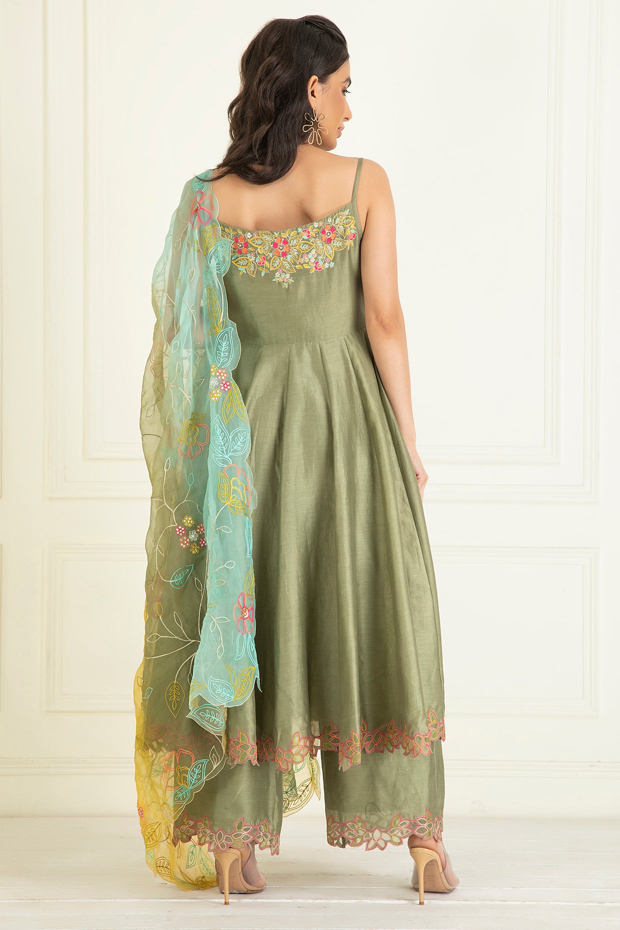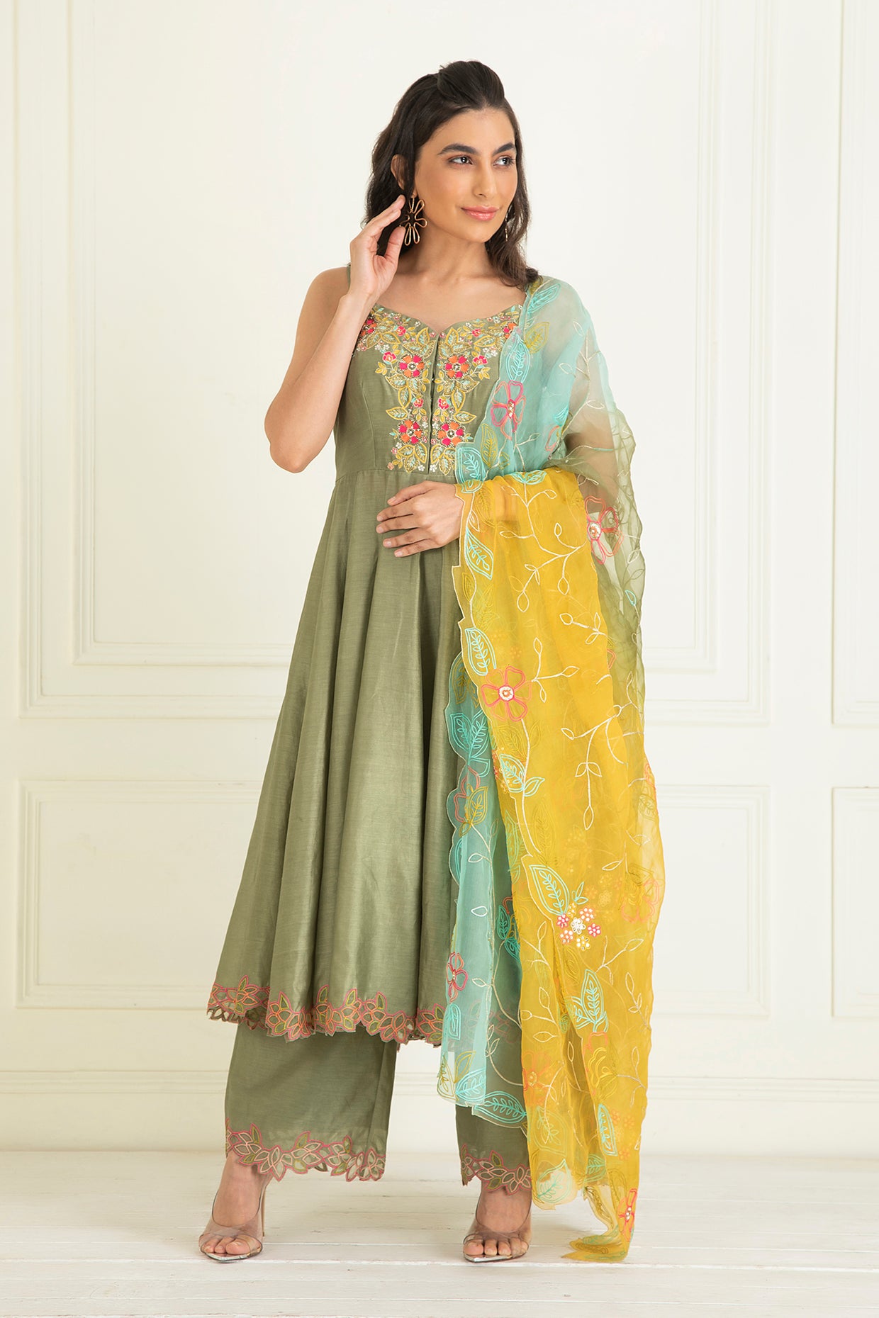 Moss Green Embroidered Chanderi Suit Set Moss Green Embroidered Chanderi Suit Set