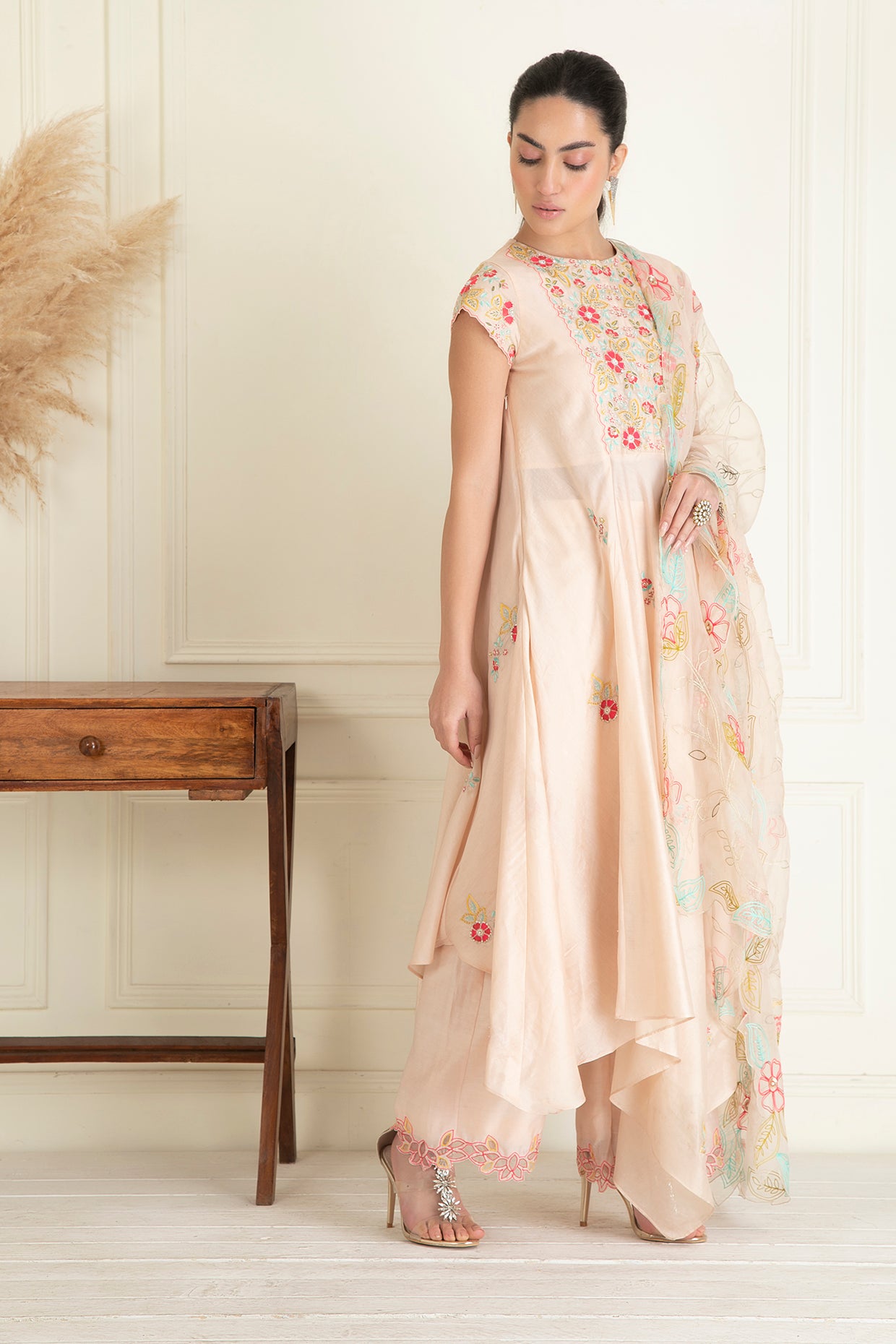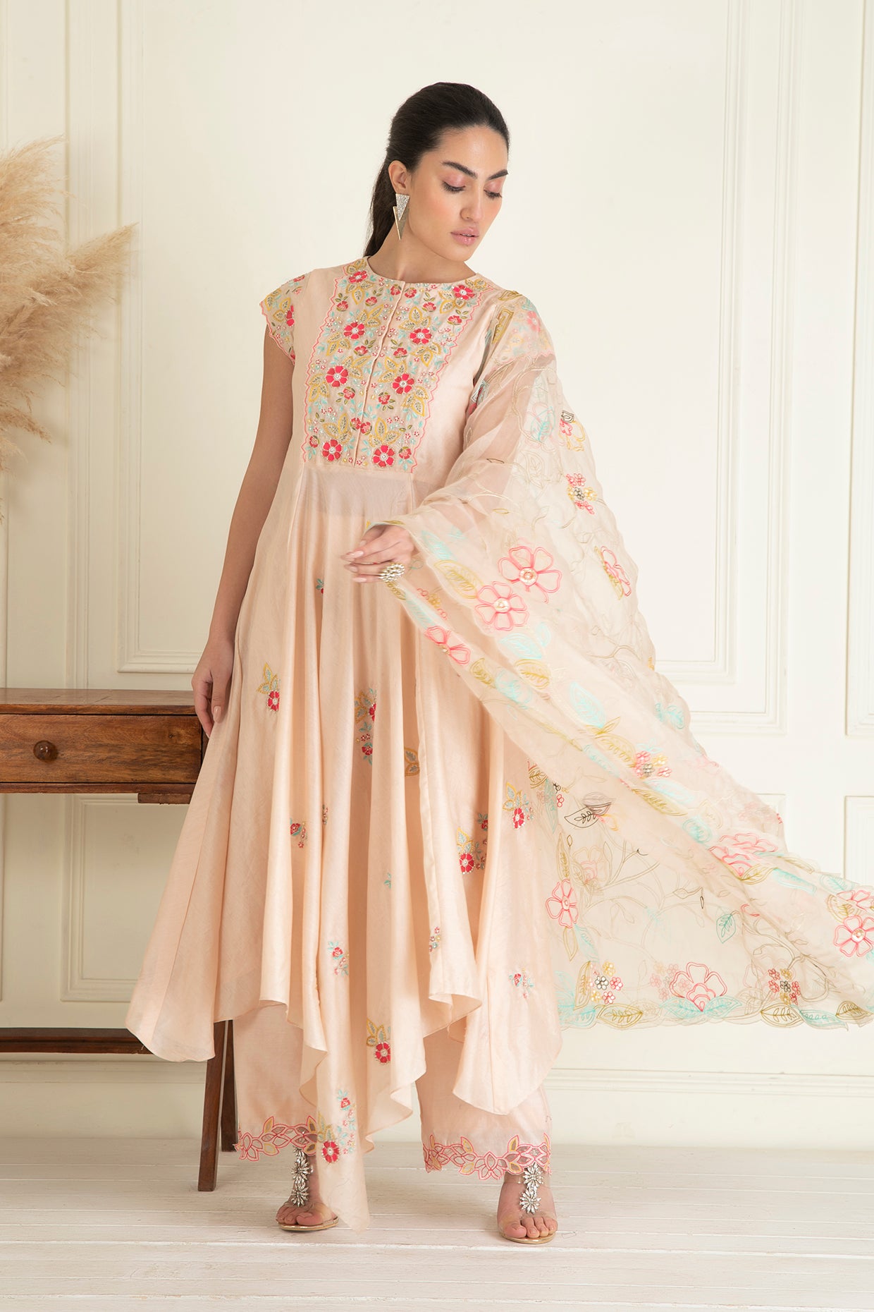 Rs. 30,600.00Peach Cotton Linen Embroidered Kurta Set