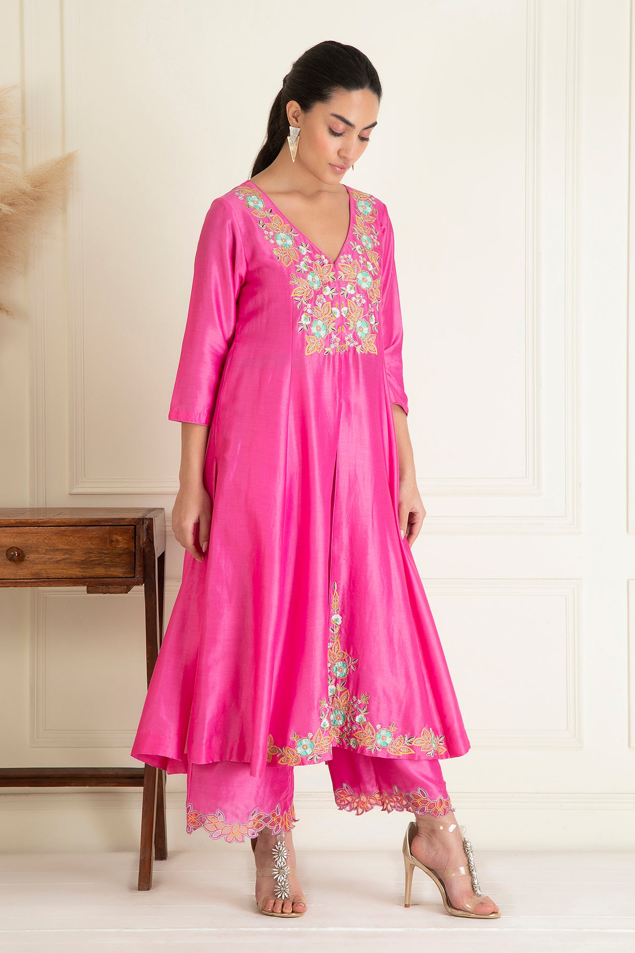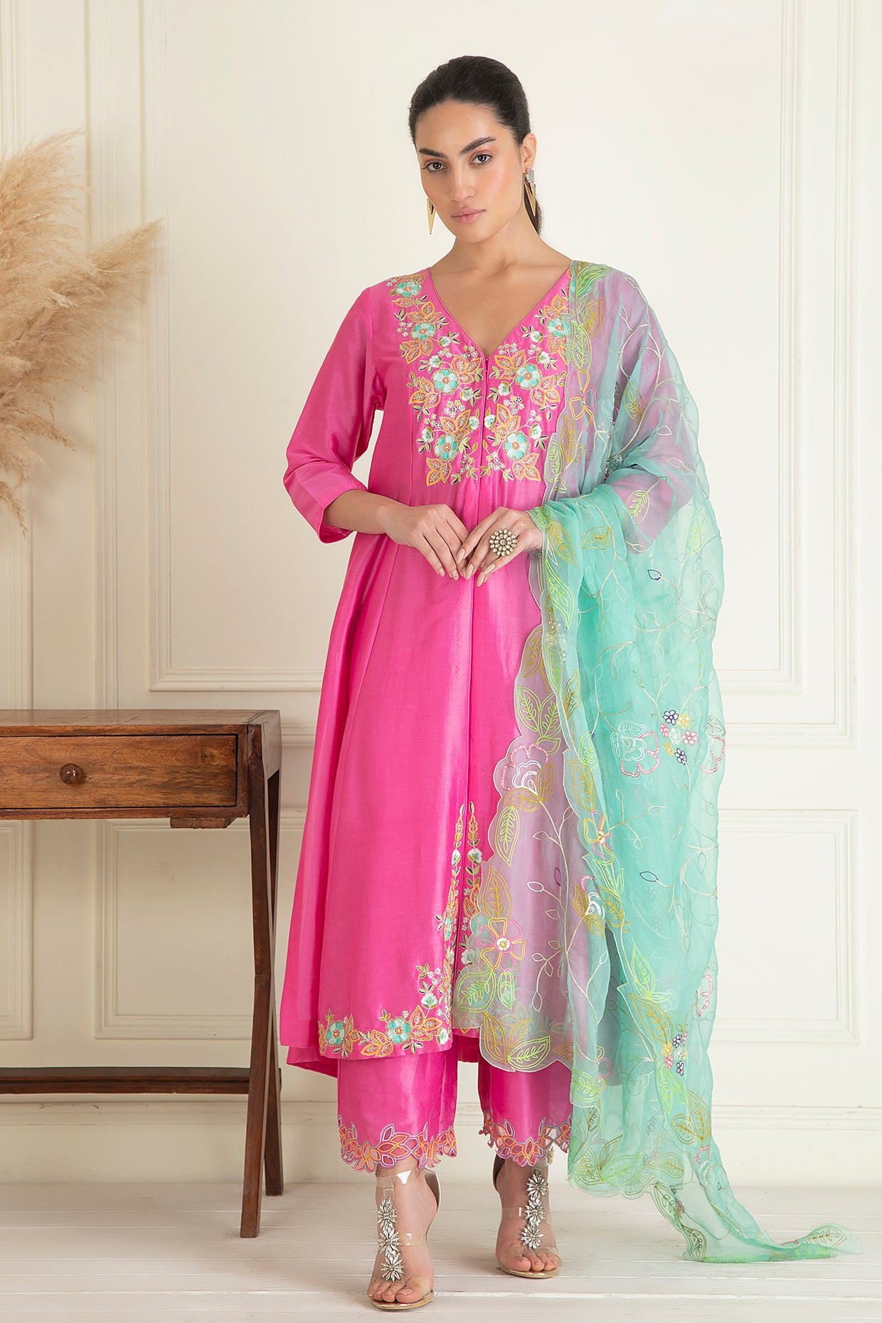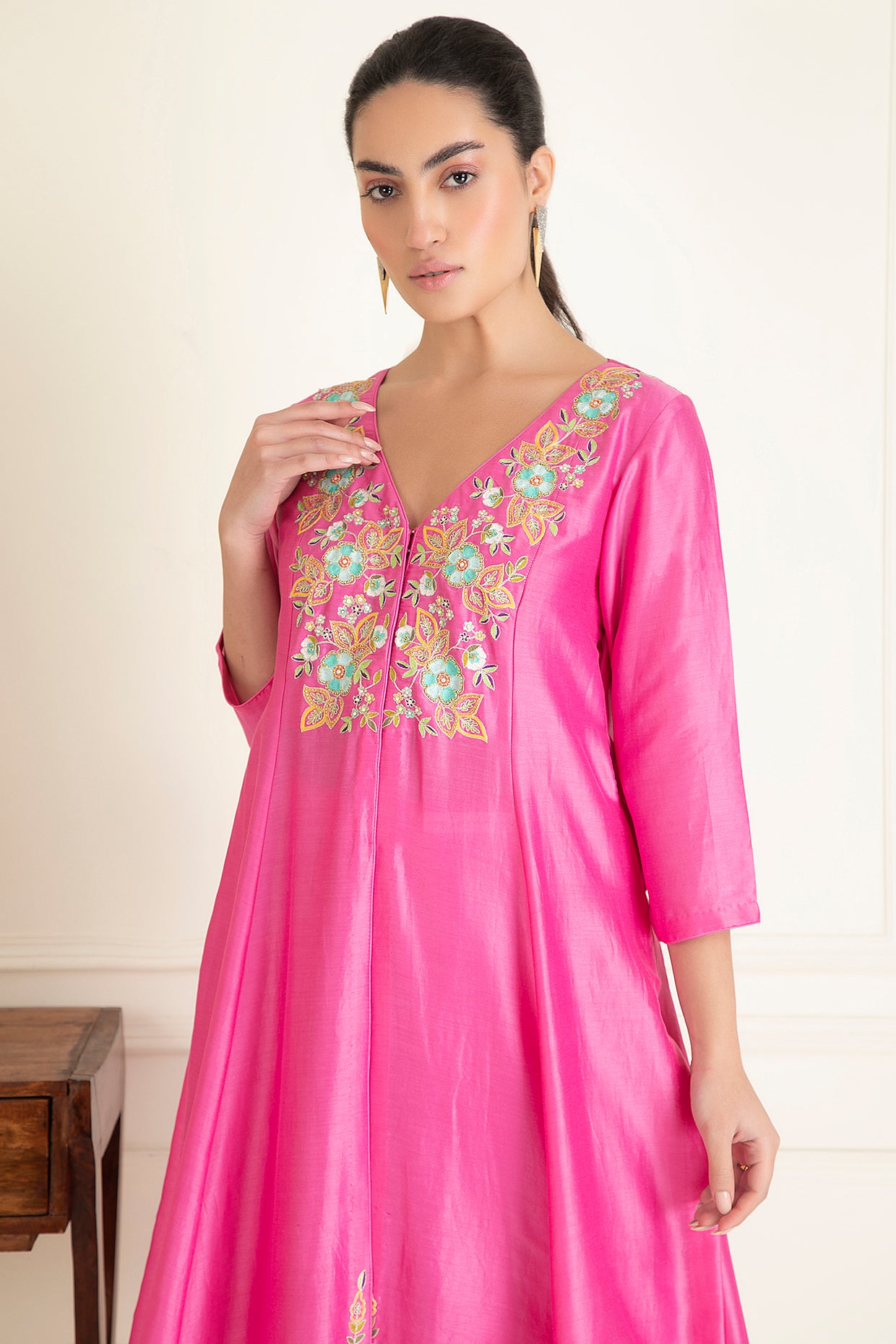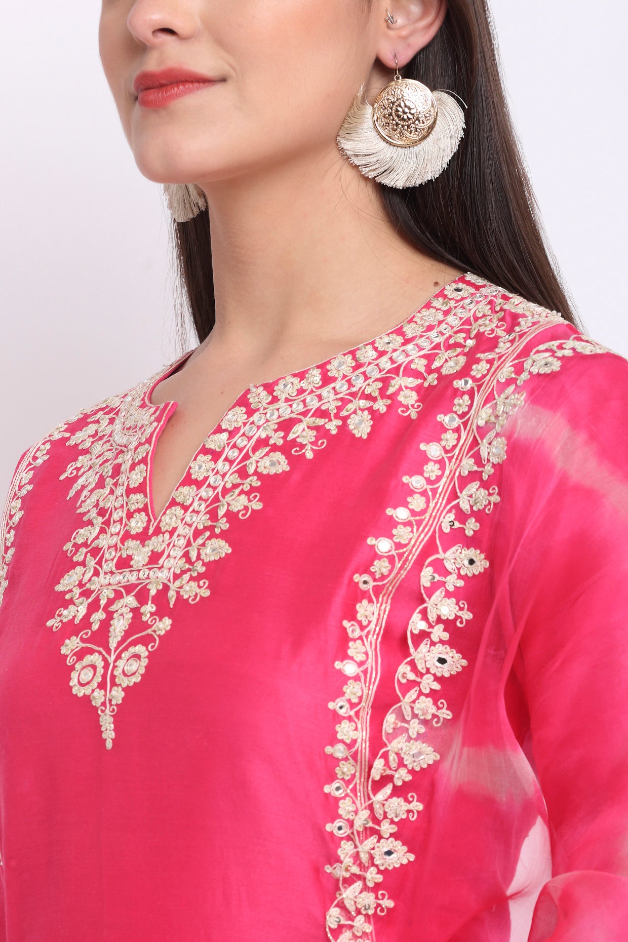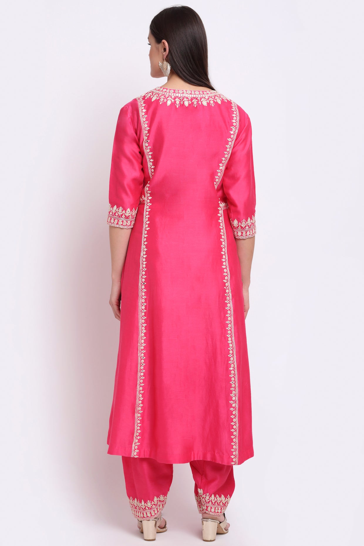 Fuchsia Pink Embroidered Chanderi Suit Set Fuchsia Pink Embroidered Chanderi Suit Set