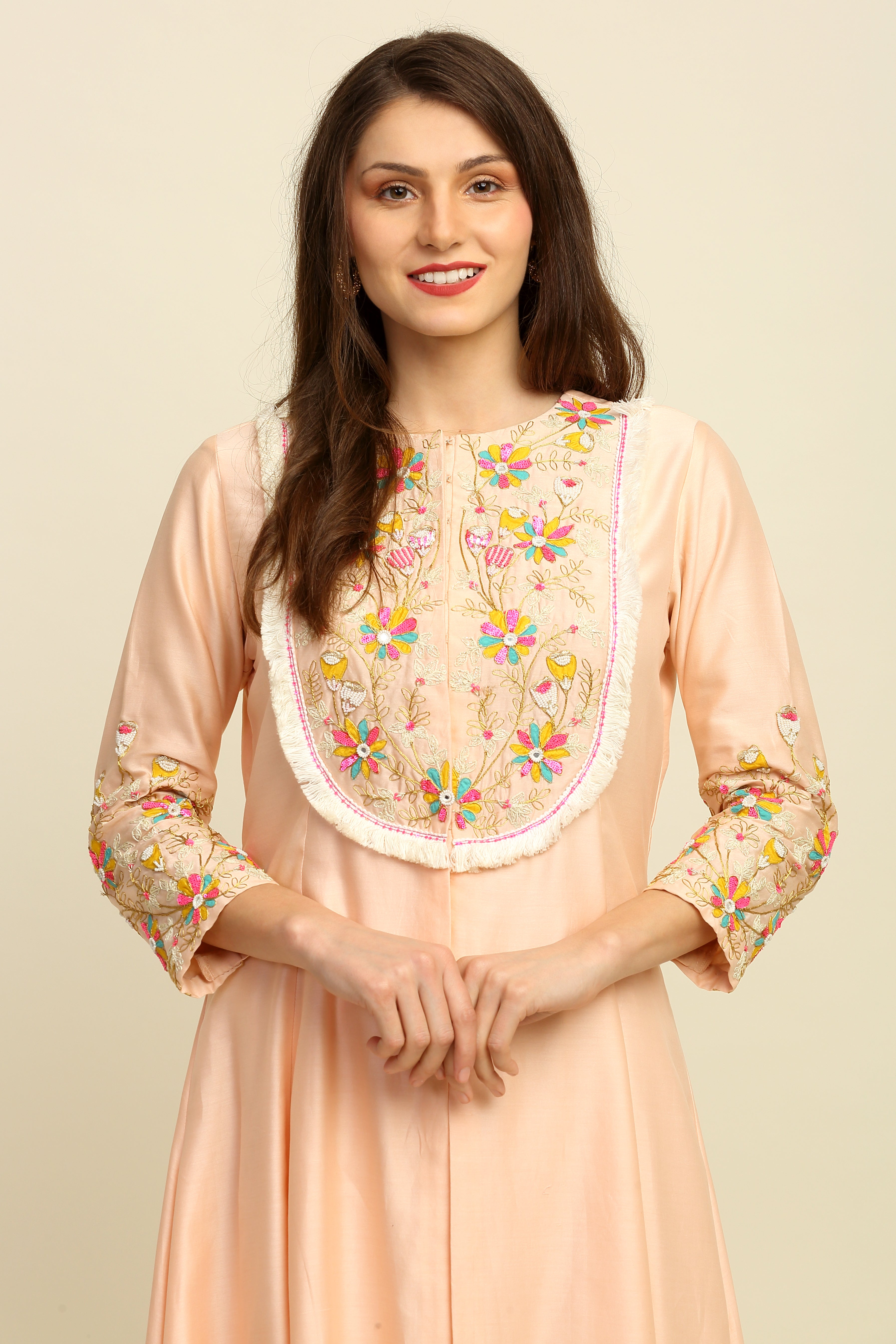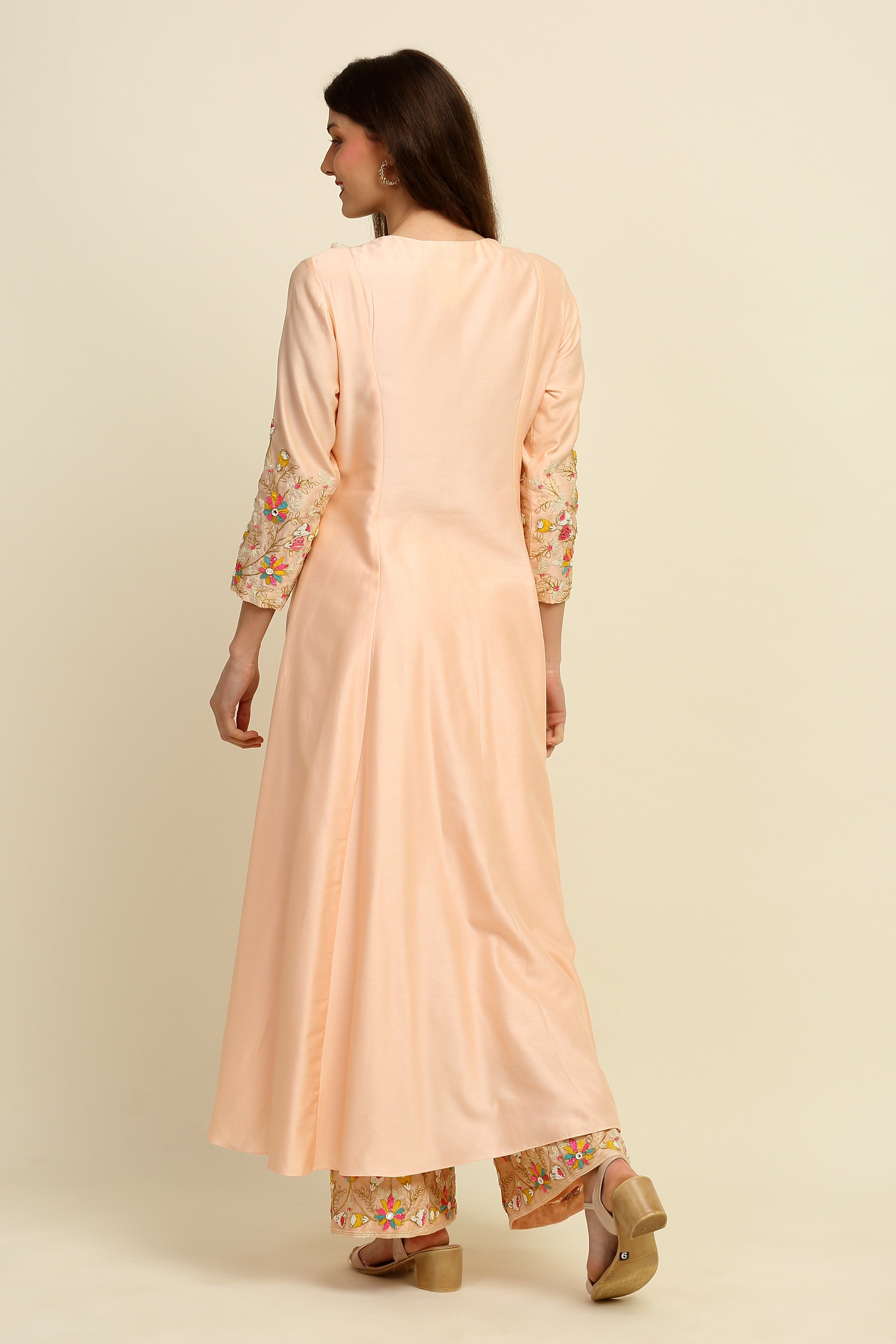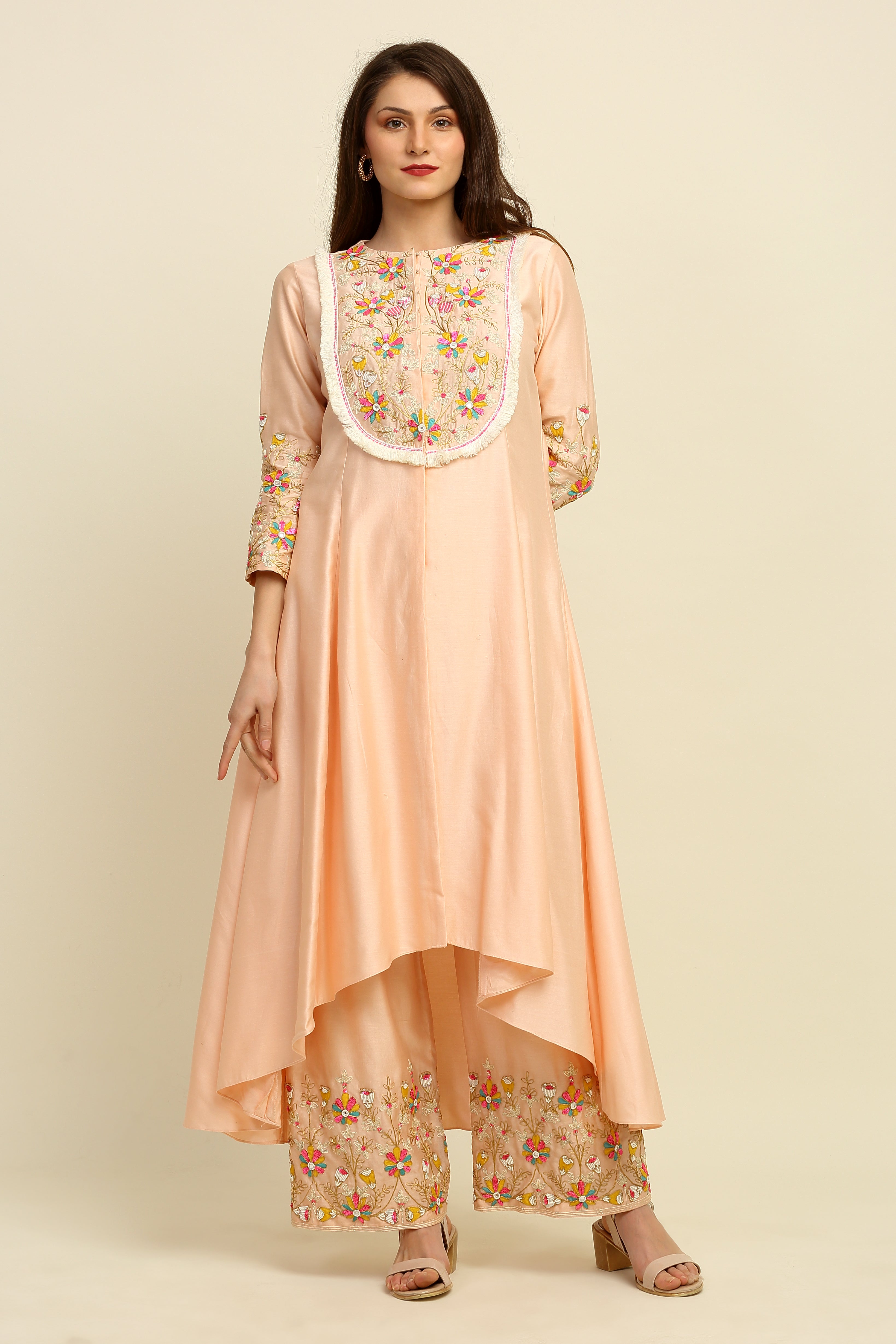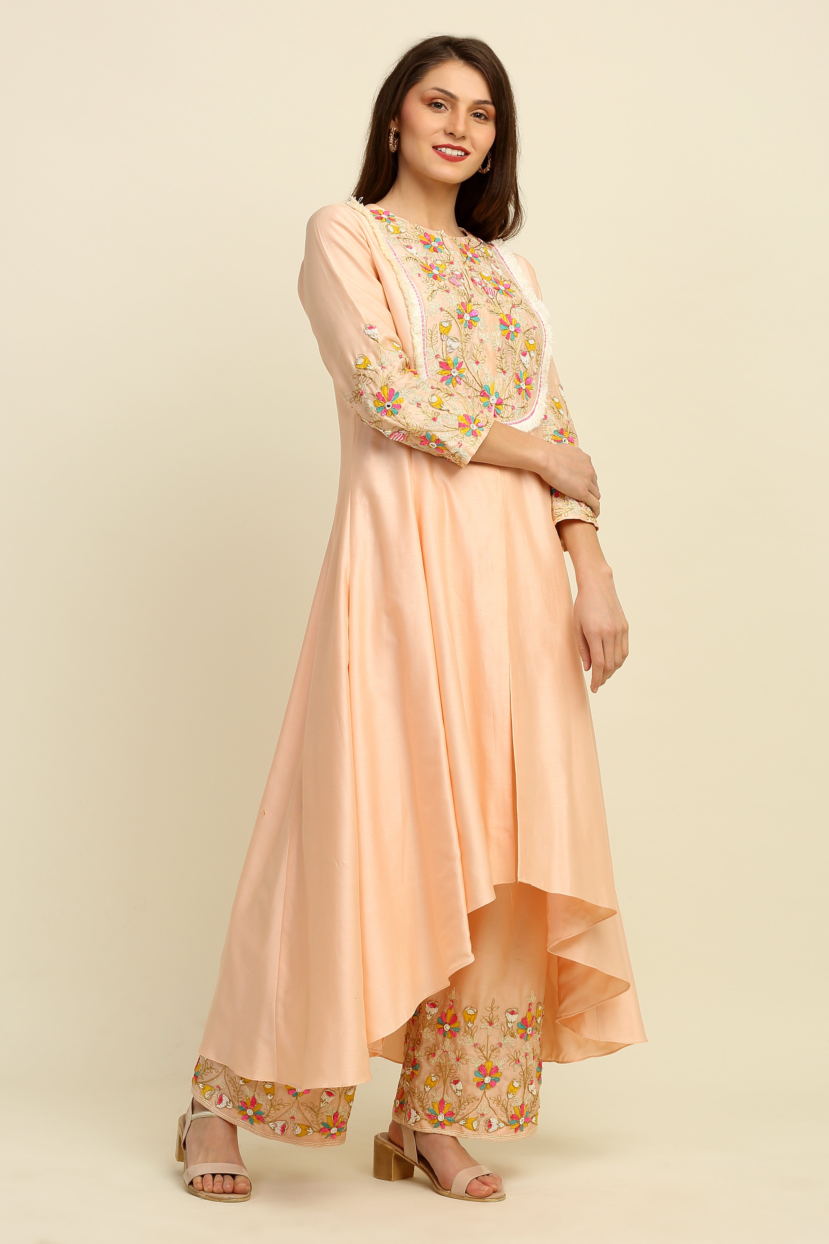 Peach Cotton Linen Embroidered Kurta Set Peach Cotton Linen Embroidered Kurta Set
